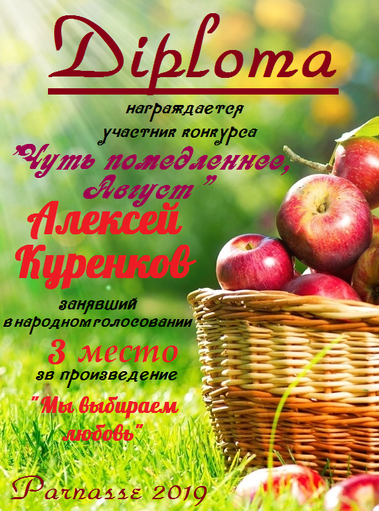 Третье место в конкурсе " Чуть помедленнее, Август", народное голосование. Поздравляем с прекрасной победой!