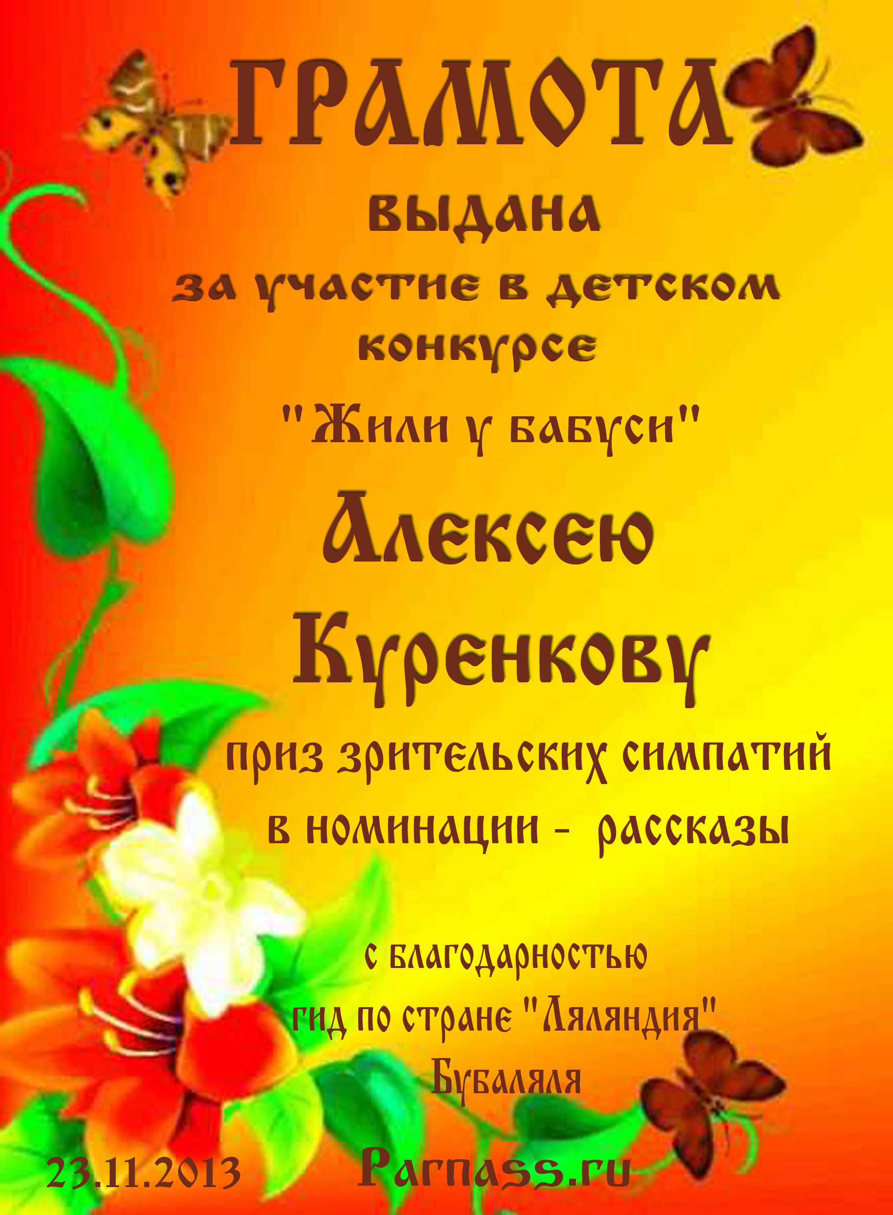 Грамота за творческие успехи в литературно-игровом конкурсе "В гостях у буриме".ПОЗДРАВЛЯЕМ!
