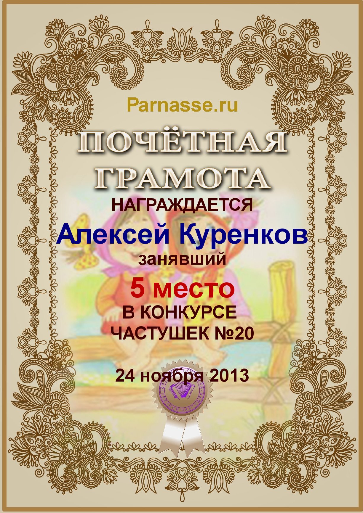 Похвальная грамота за участие в конкурсе лимериков № 20 (17.09.2012 г.)