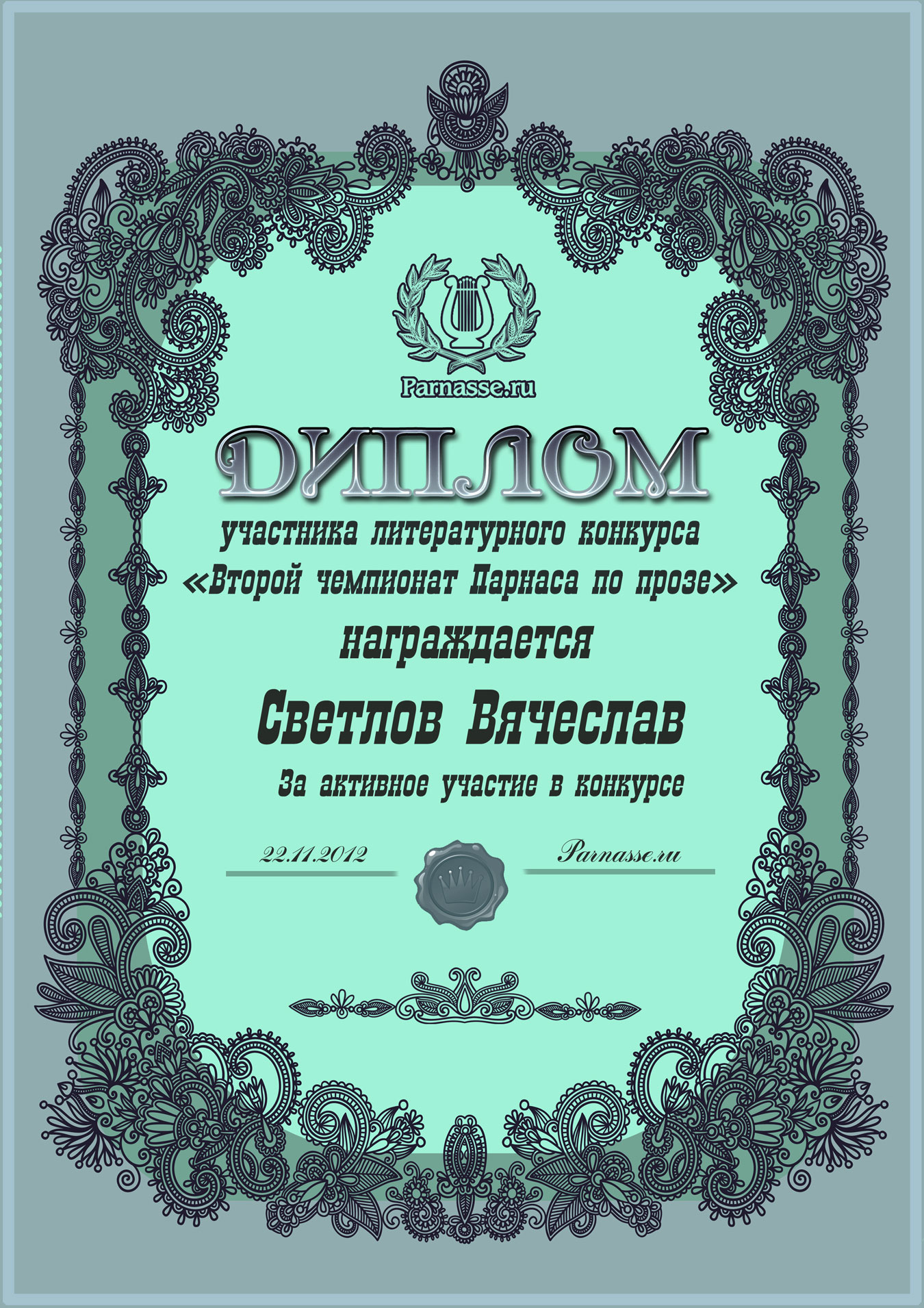 За активное участие во втором Чемпионате Парнаса по прозе! Поздравляем!