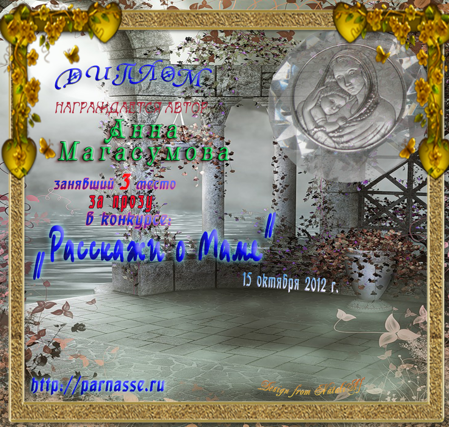ДИПЛОМ ЗА ТРЕТЬЕ МЕСТО В КОНКУРСЕ "РАССКАЖИ О МАМЕ" Проза
