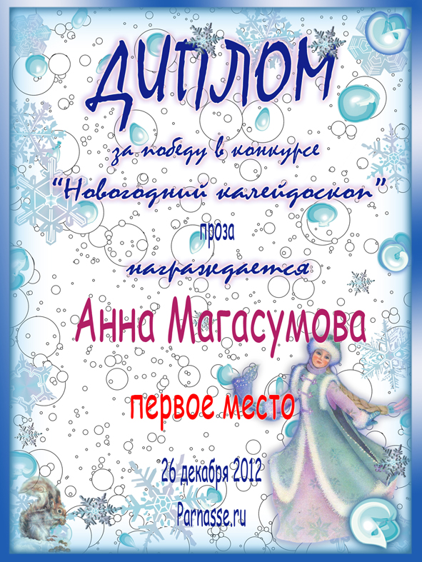 Номинация "Красивый рассказ о любви", произведение "Рождественская сказка о принцессе и пирате". Поздравляем, Анна, с победой в конкурсе!