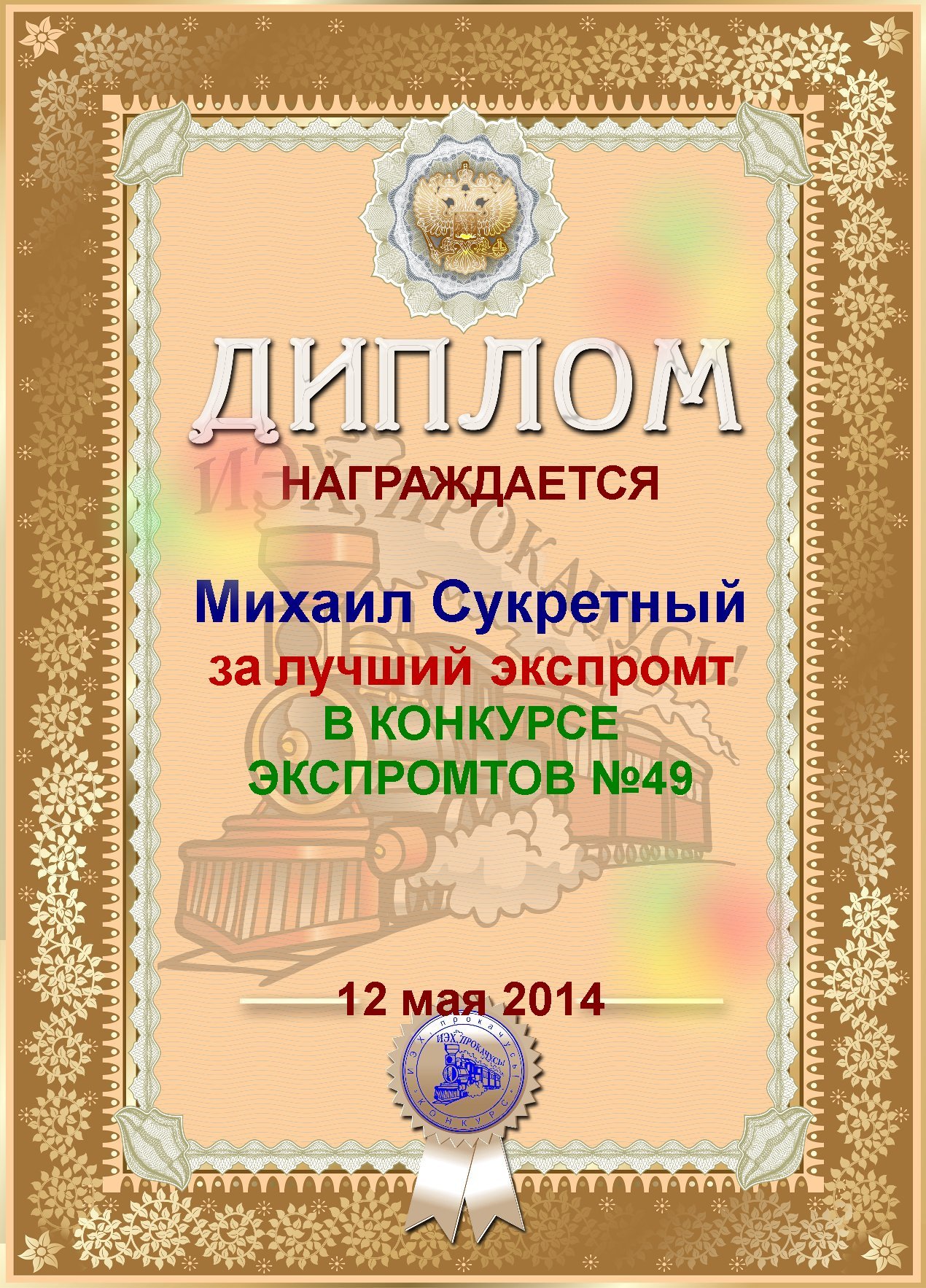 ПОЗДРАВЛЯЕМ С ЛУЧШИМ ЭКСПРОМТОМ В КОНКУРСЕ №8, Михаил!