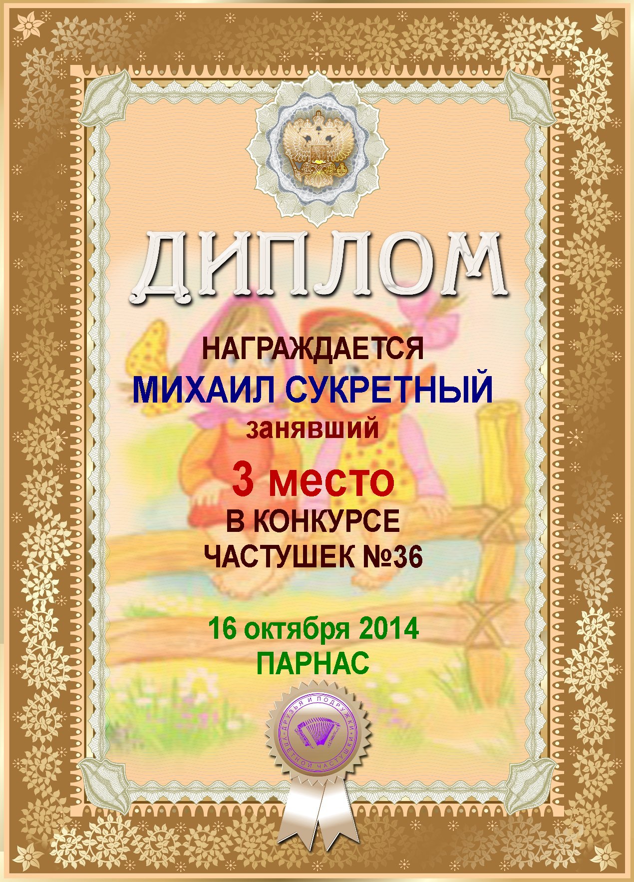 за 3е место в конкурсе частушек №37