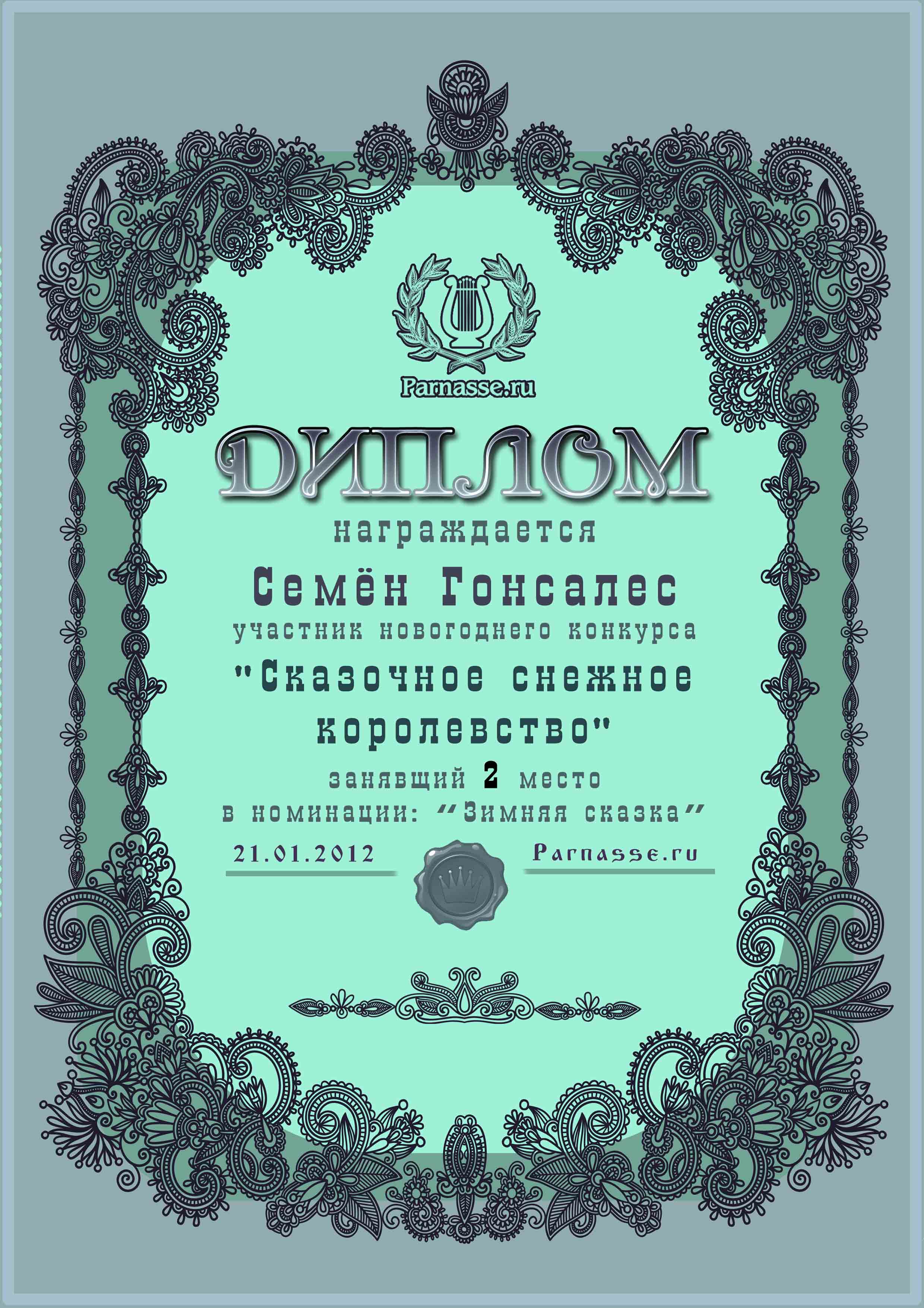 От лица Администрации творческого портала "Парнас" вручаем Вам этот памятный знак с самыми наилучшими пожеланиями! Пусть Вас весь год не покидает творческий запал, удача, а здоровье будет столь же крепким и нерушимым, как и традиция Новогоднего праздника! Счастья, успехов и любви Вам и Вашей семье, друзьям и близким!