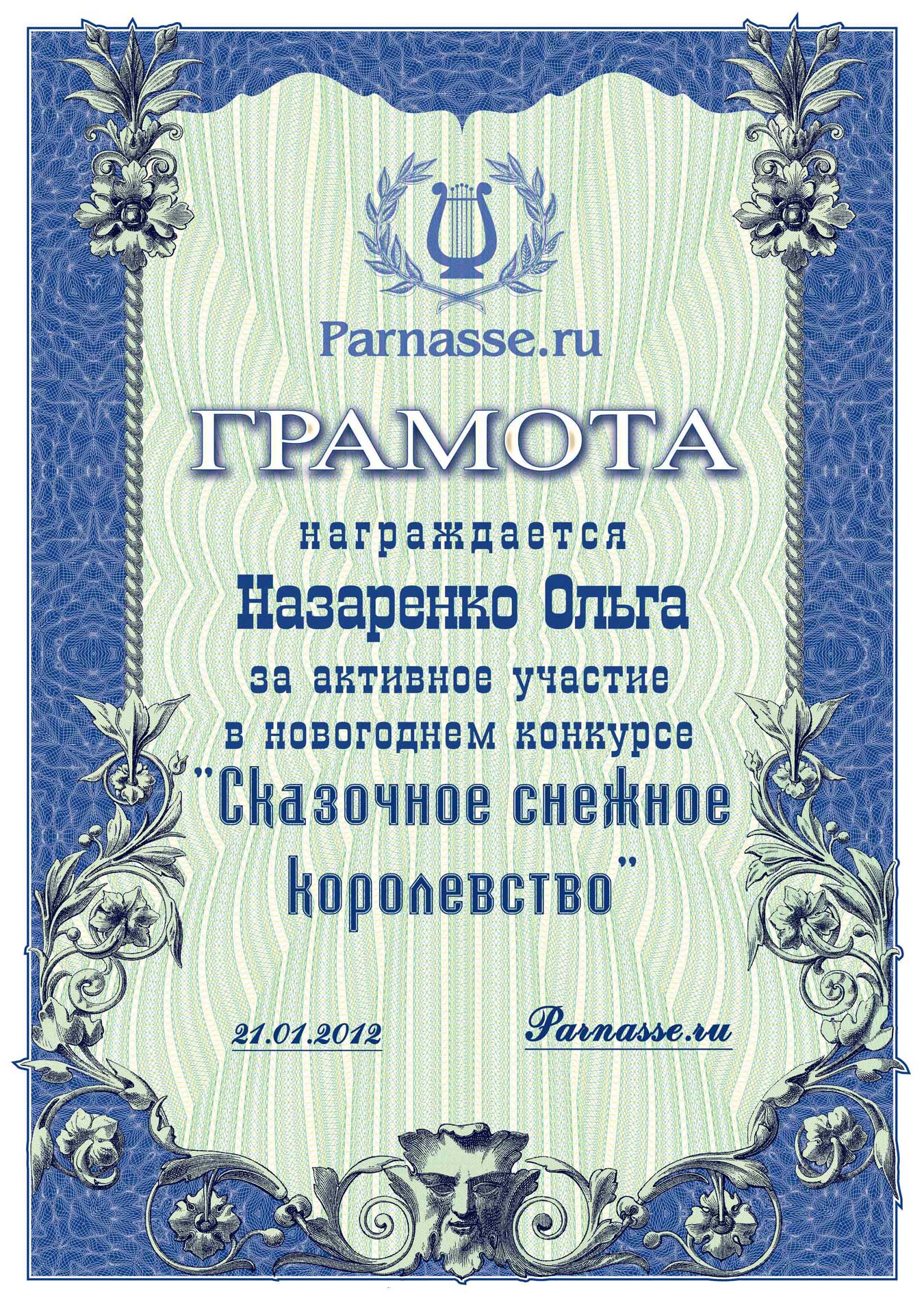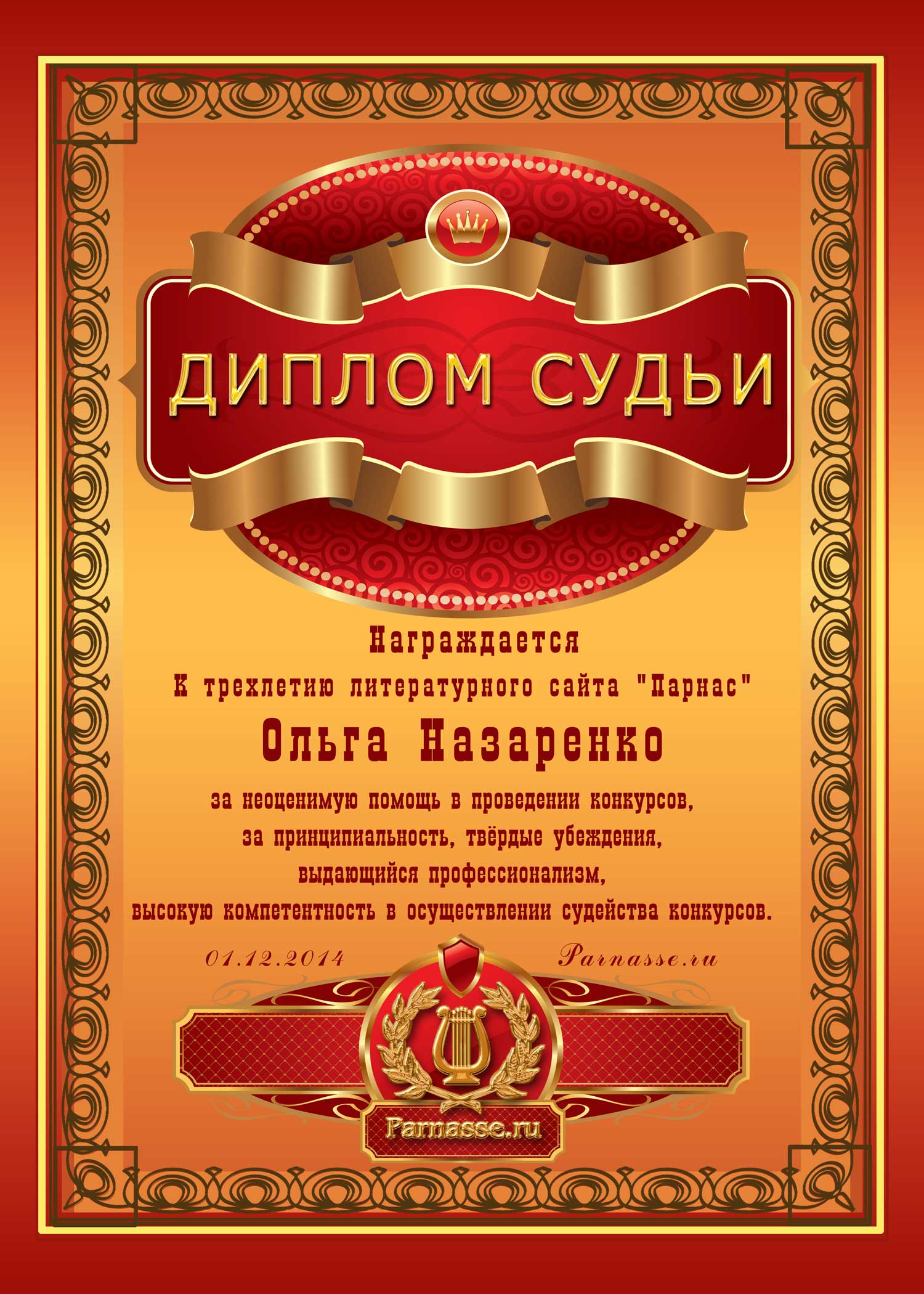 Уважаемая Ольга!Спасибо Вам большое за высокопрофессиональное, объективное судейство конкурсов на Парнасе!