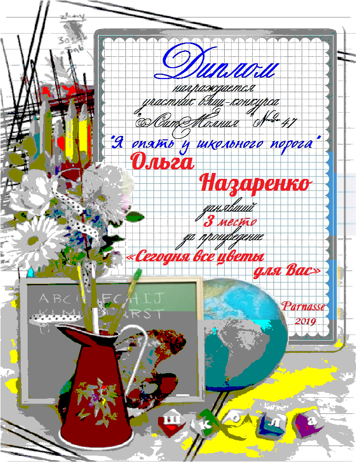 Третье место в Блиц-конкурсе №47 «Я опять у школьного порога» за произведение «Сегодня все цветы для Вас». Поздравляем!