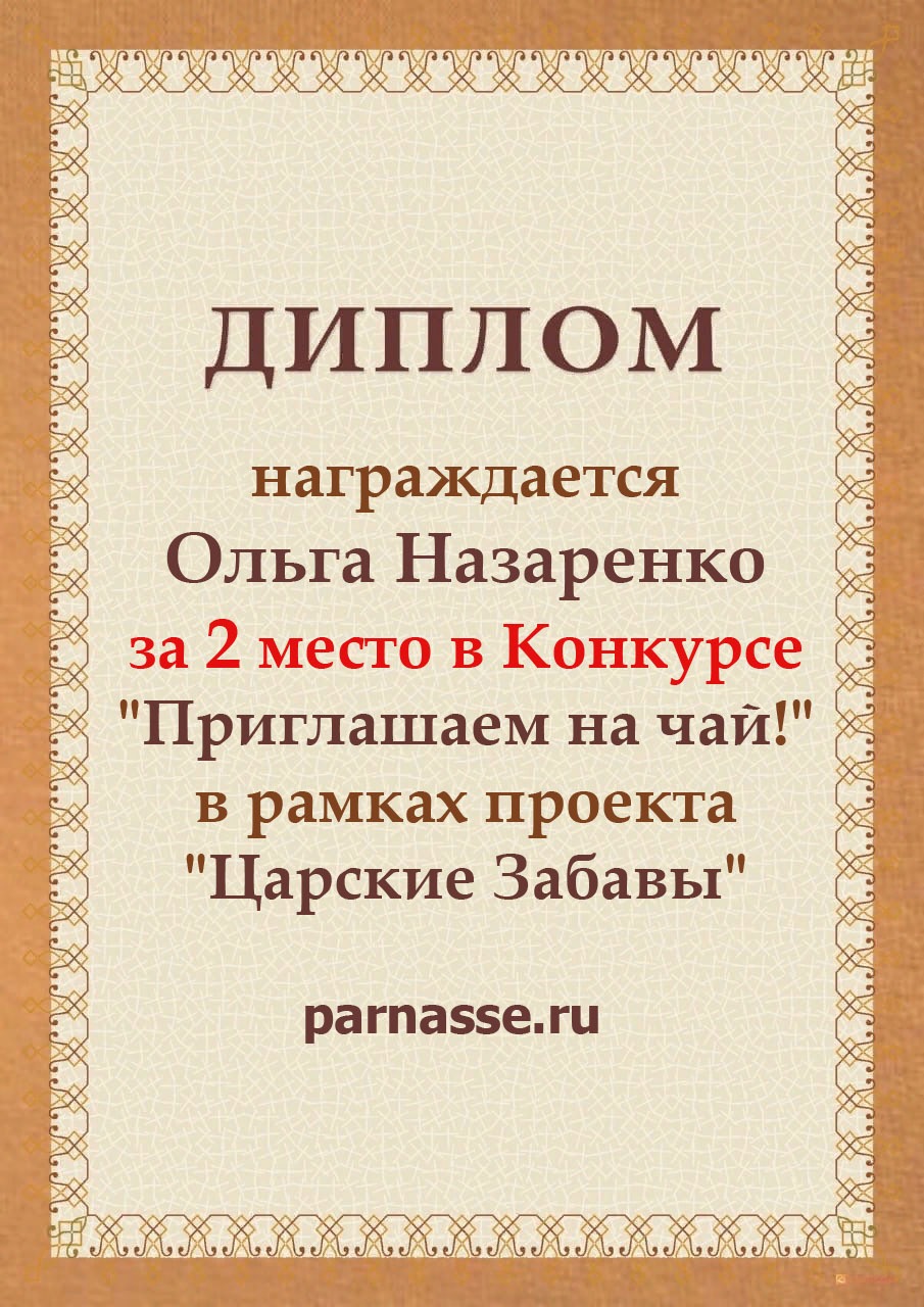 За 2 место в конкурсе "Приглашаем на чай!" в рамках проекта "Царские Забавы"