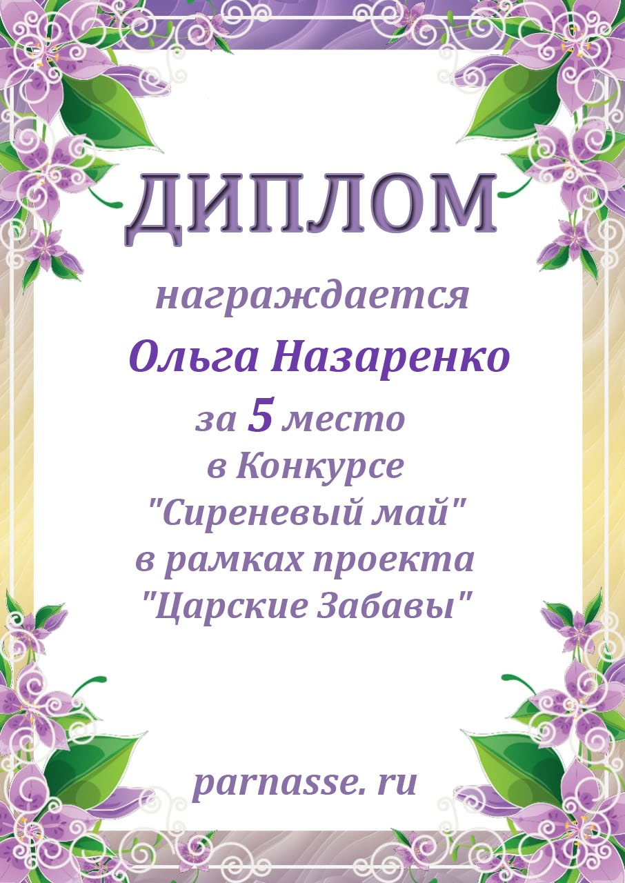 За 5 место в конкурсе "Сиреневый май" в рамках проекта "Царские Забавы"
