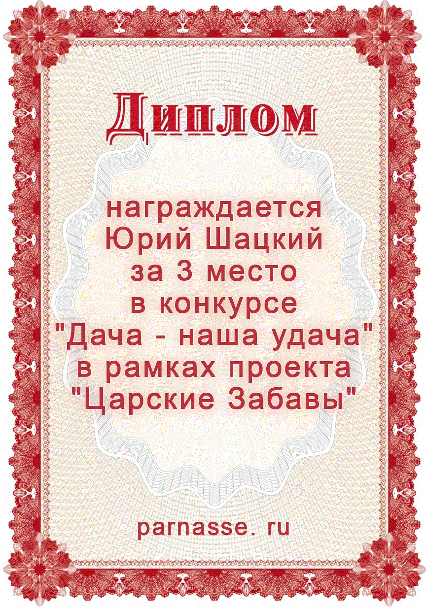 За 3 место в конкурсе "Дача - наша удача" в рамках проекта "Царские Забавы"