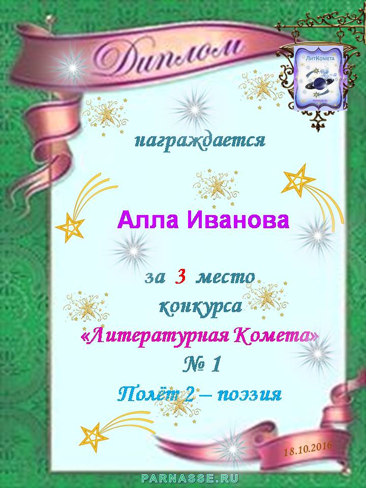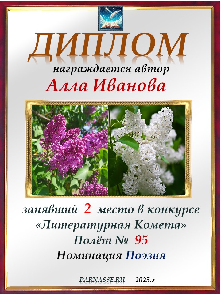 Поздравляю с занятым 2 местом в конкурсе "ЛитКомета - Полёт № 95" - Номинация Поэзия!