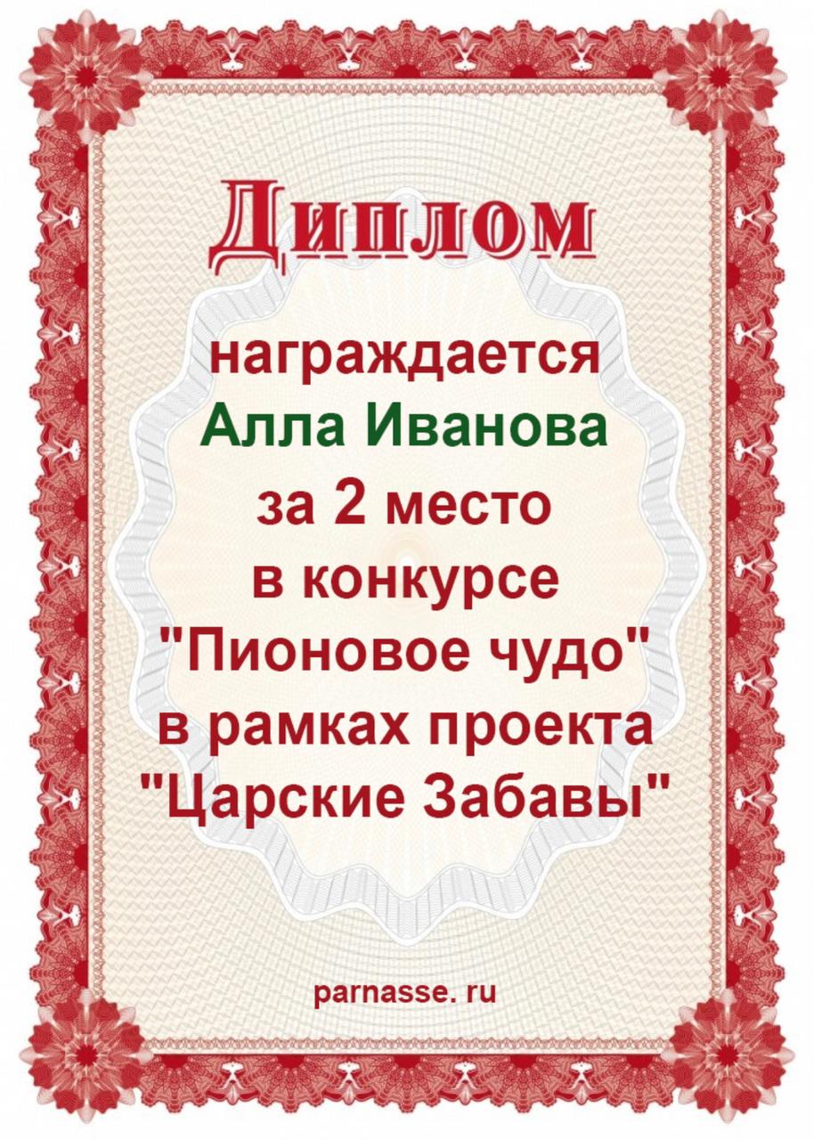 2 место в конкурсе "Пионовое чудо".в рамках проекта "Царские Забавы". Поздравляем!