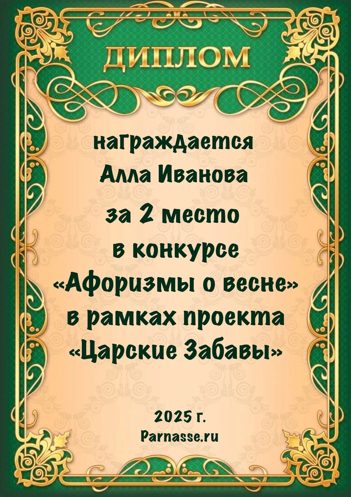 2 место в конкурсе "Афоризмы о весне". Поздравляем!