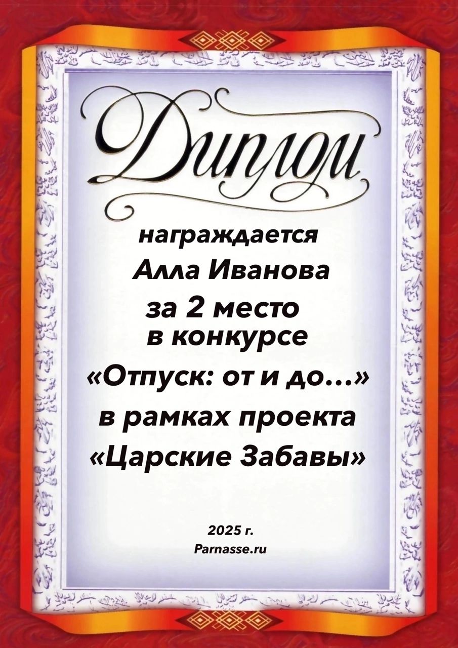 2 место в конкурсе "Отпуск: от и до".. Поздравляем!