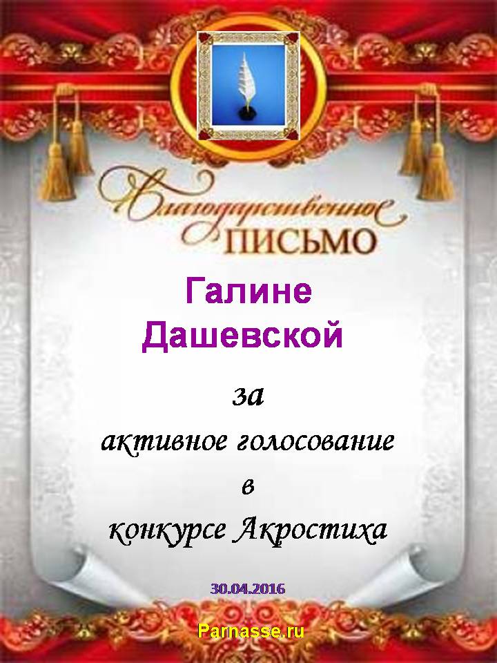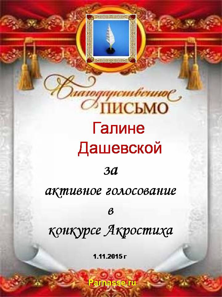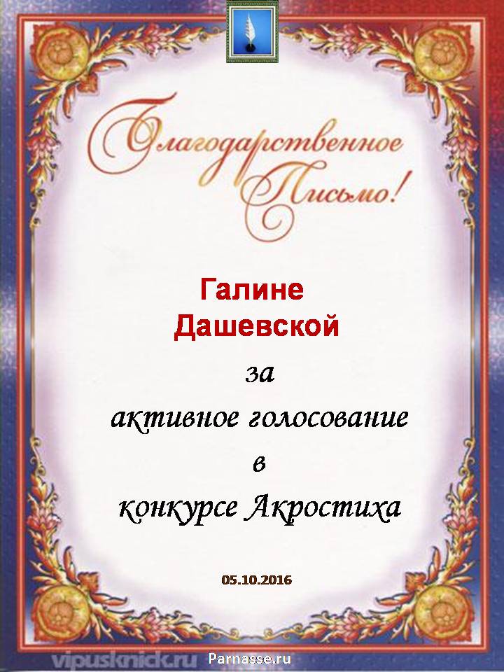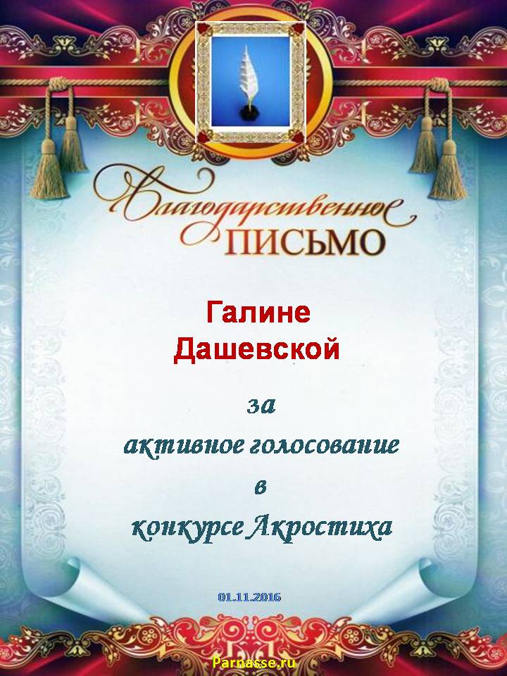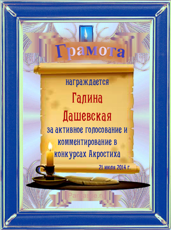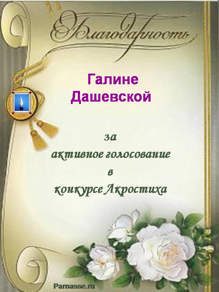 Грамота за активное голосование и комментирование в конкурсах Акростиха! Спасибо за поддержку!