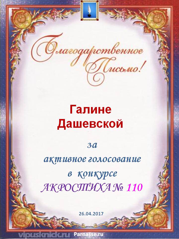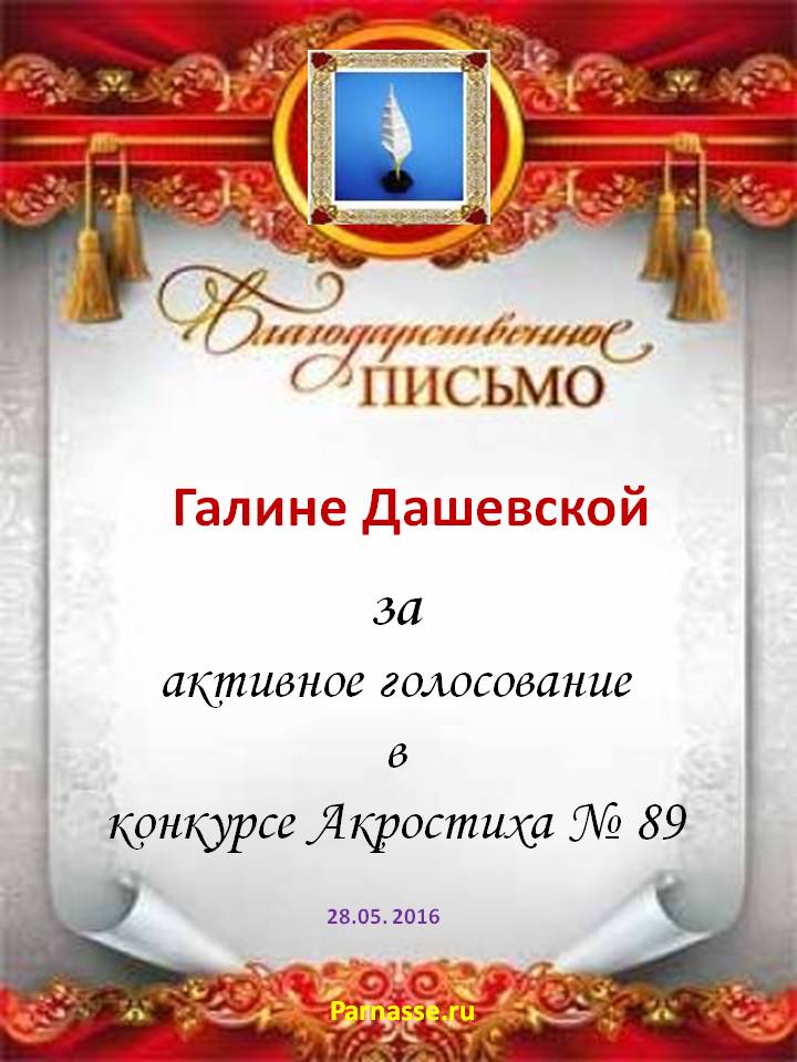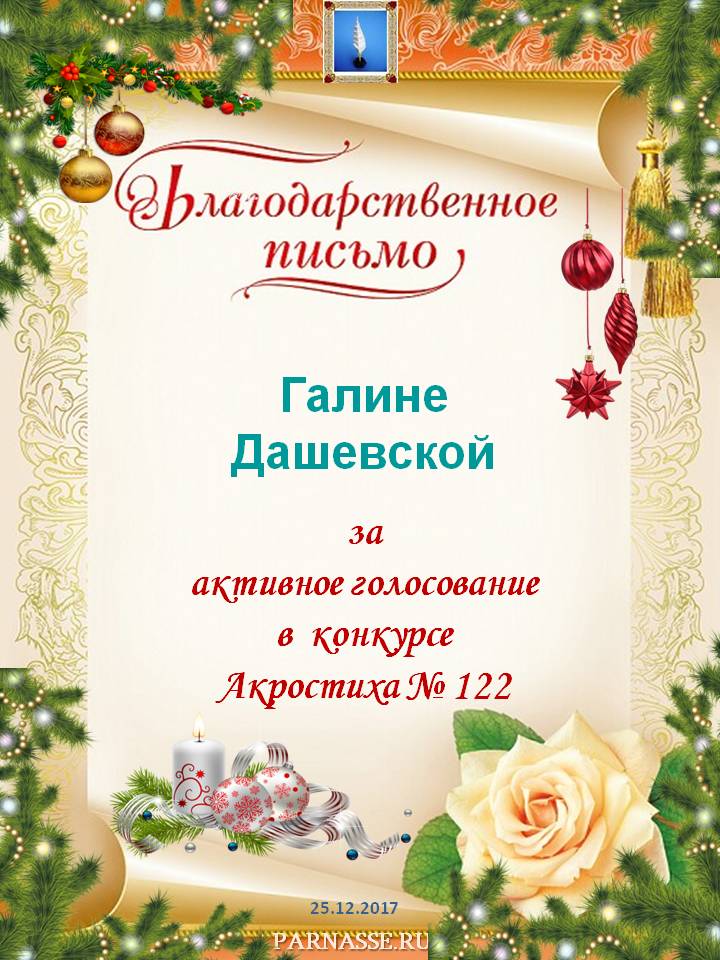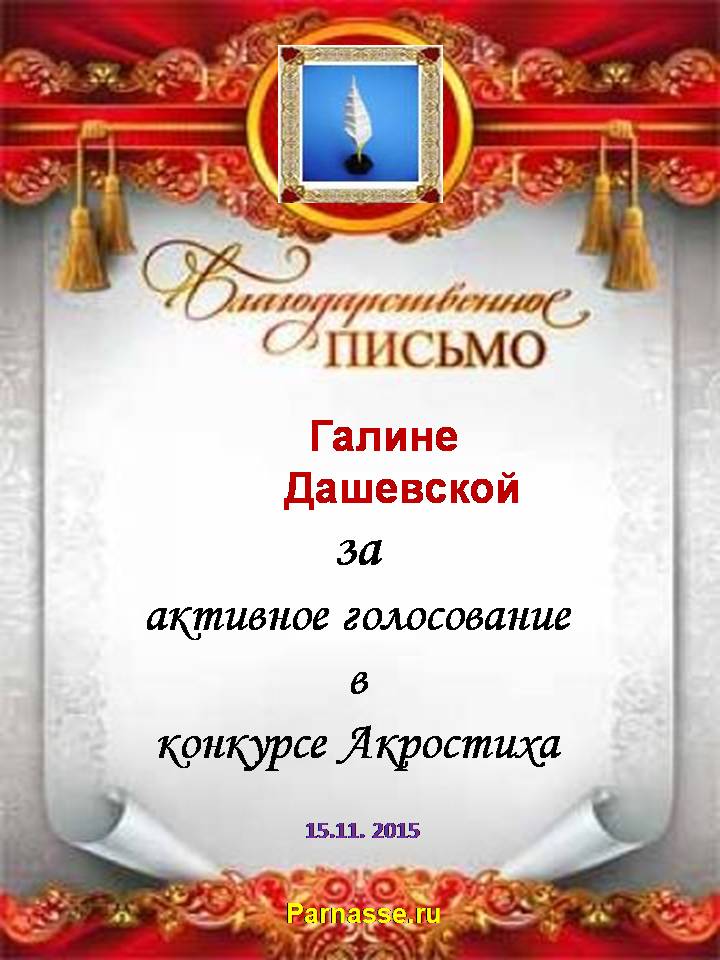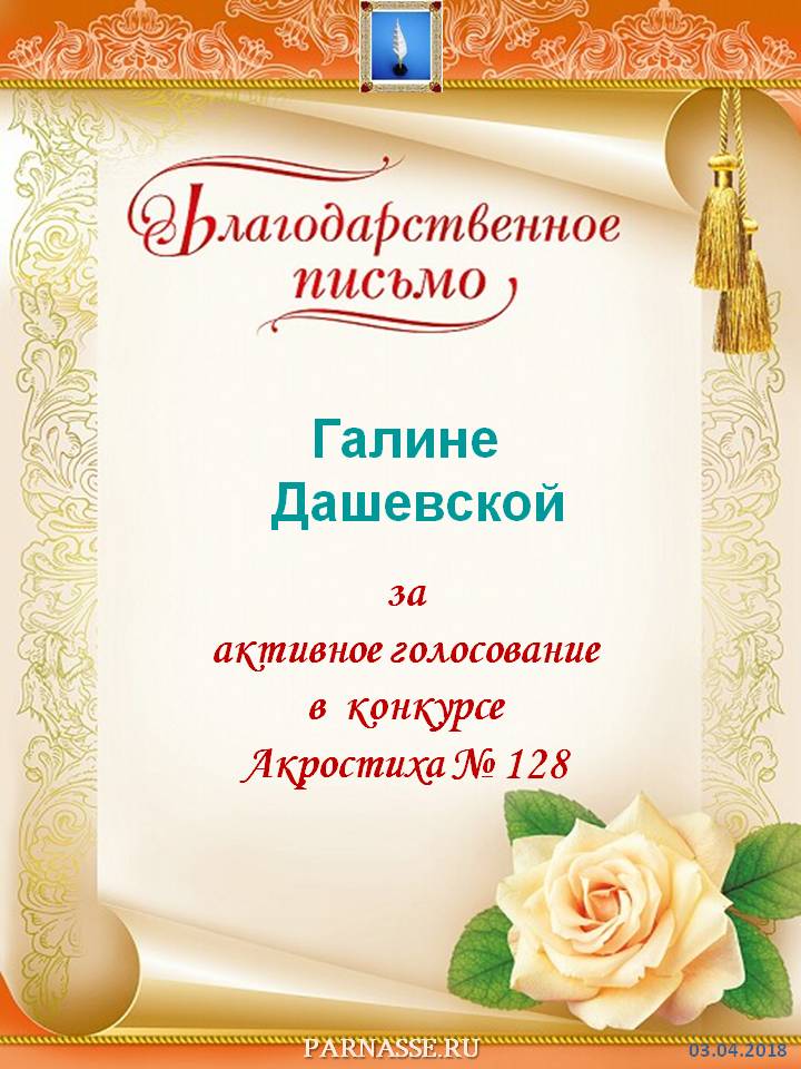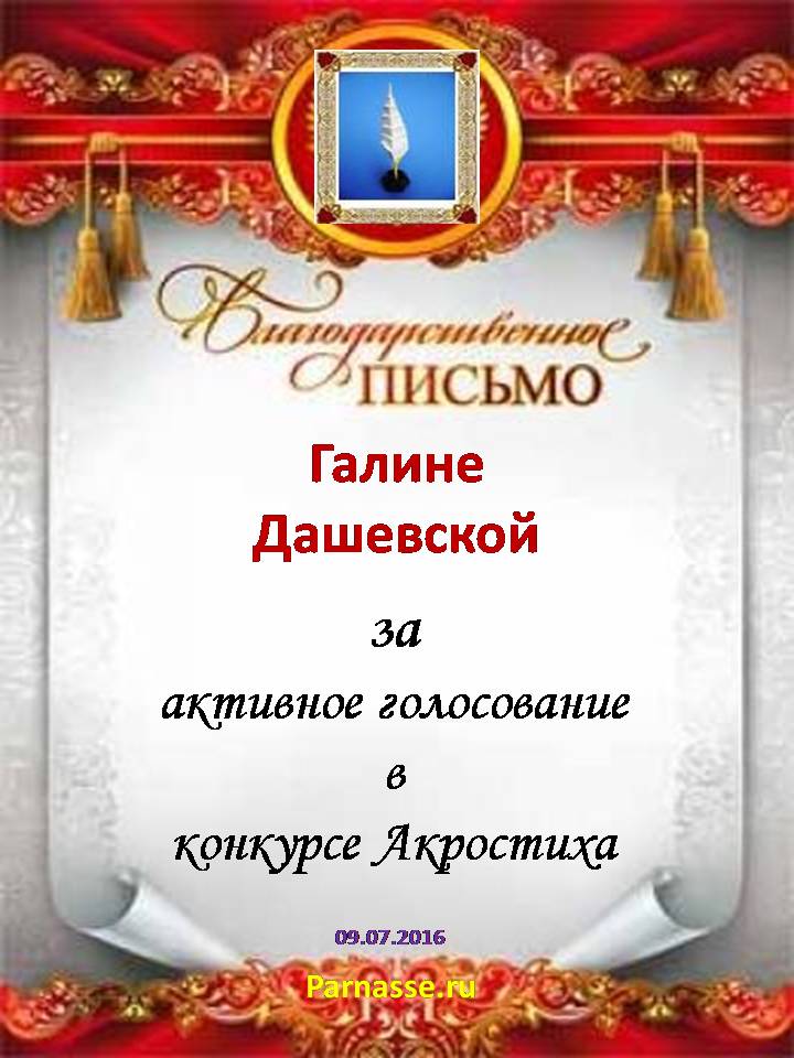 Грамота за активное голосование и комментирование в конкурсах Акростиха! Спасибо за поддержку!
