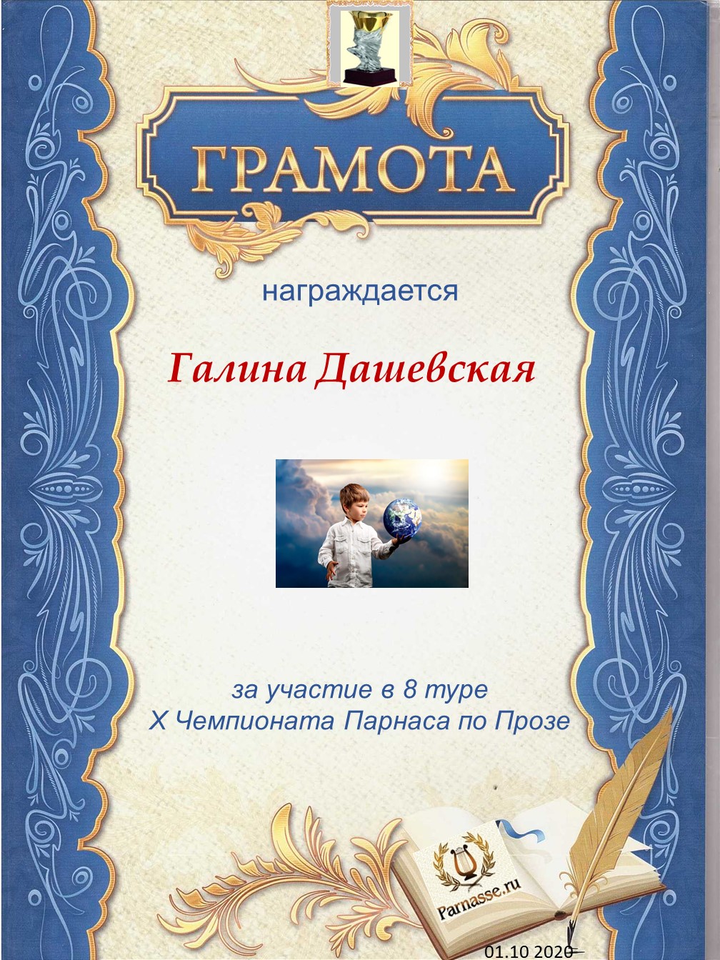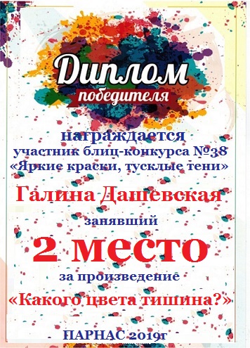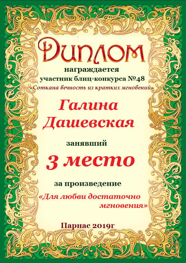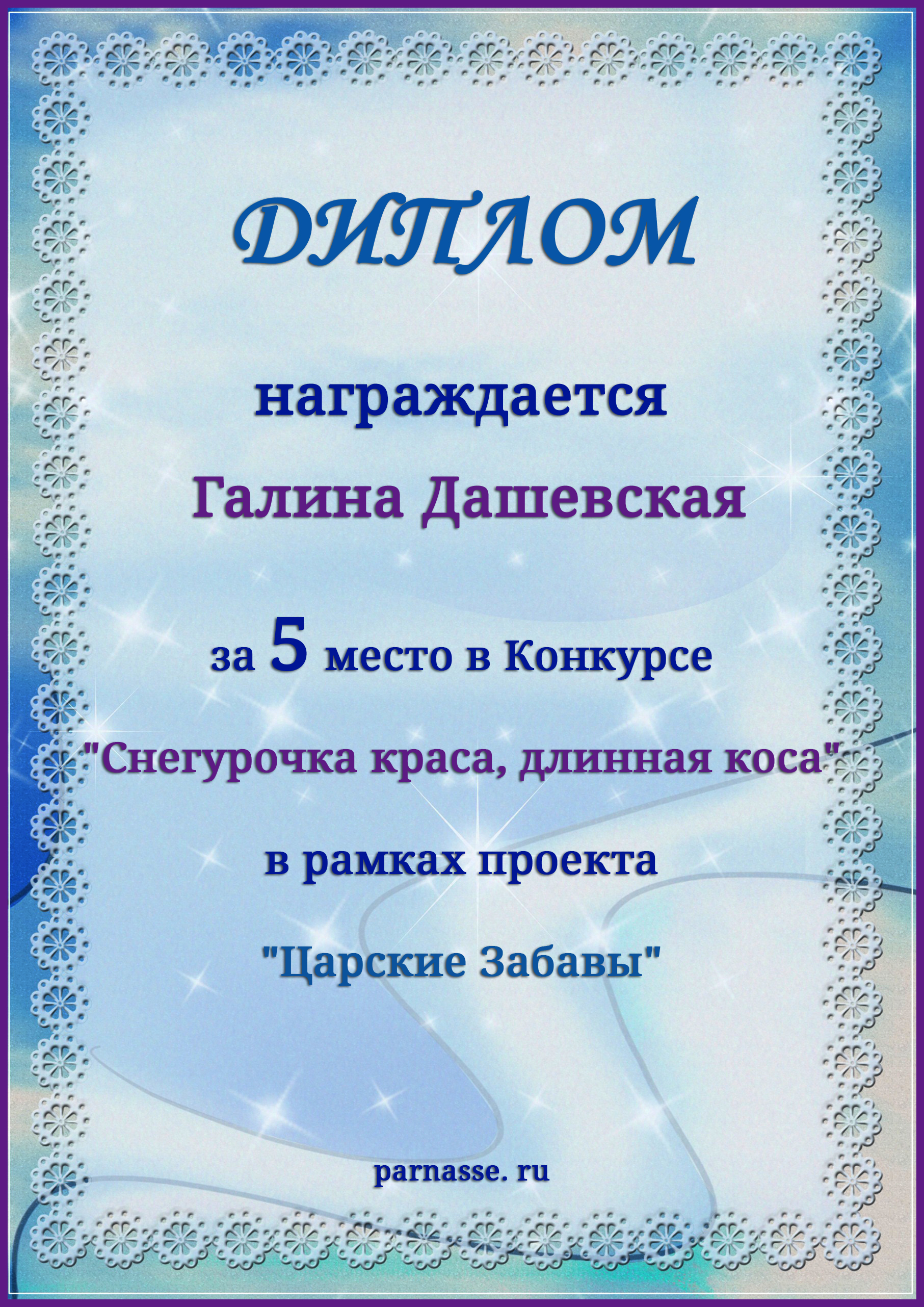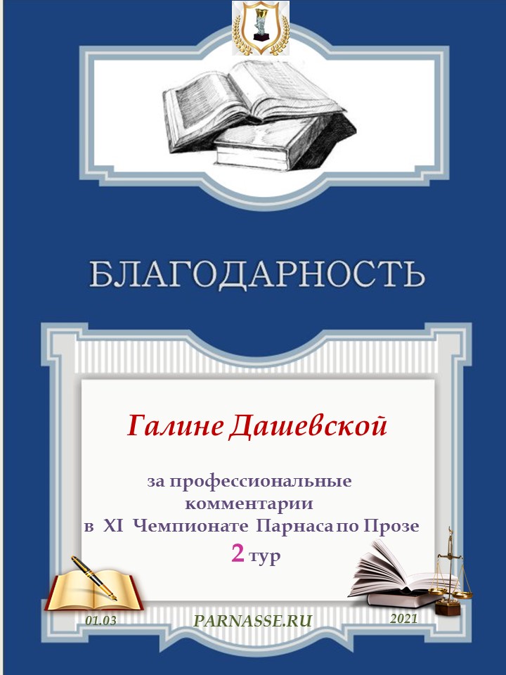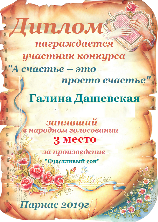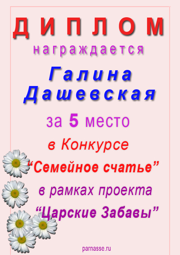 За неугасающую и неисчерпаемую творческую активность, постоянный контакт с Музой и признание сообществом "Парнасцев".От всей души желаем Вам, Галина, здоровья, любви, успехов, благополучия, удачи и творческого вдохновения!