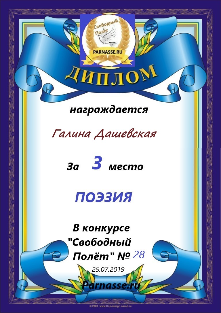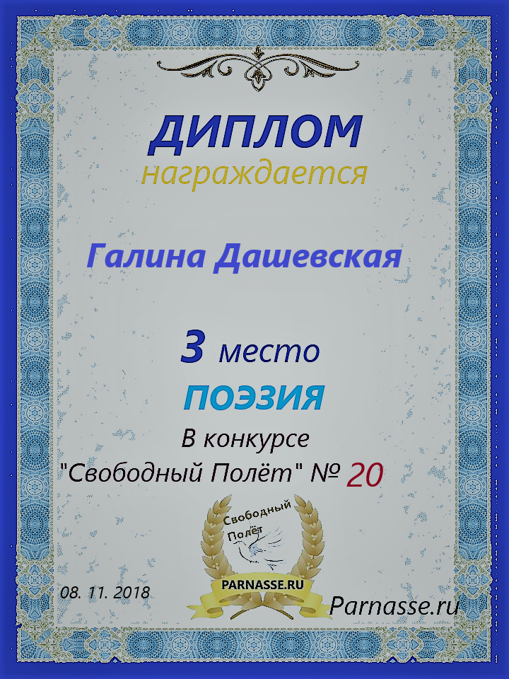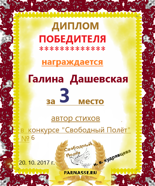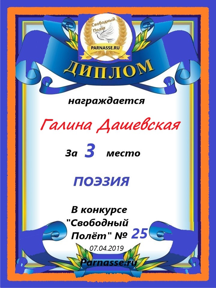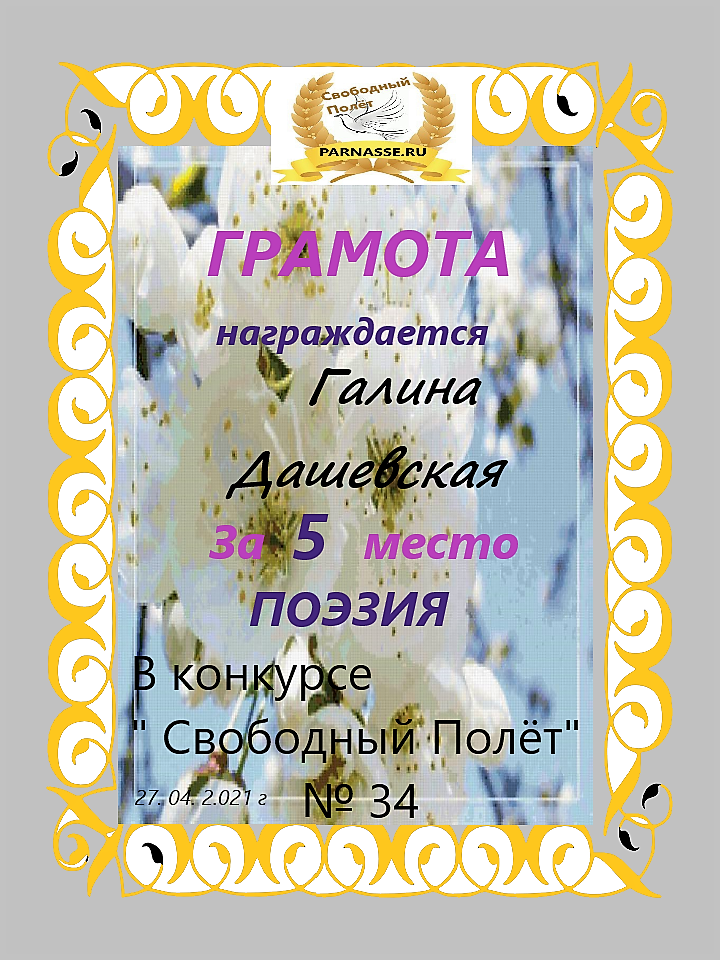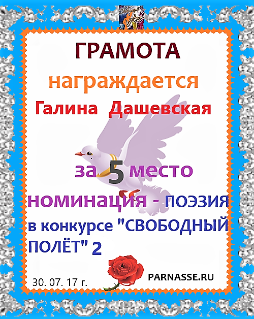 за 5 место в конкурсе "Свободный Полёт" № 35 ПОЭЗИЯ