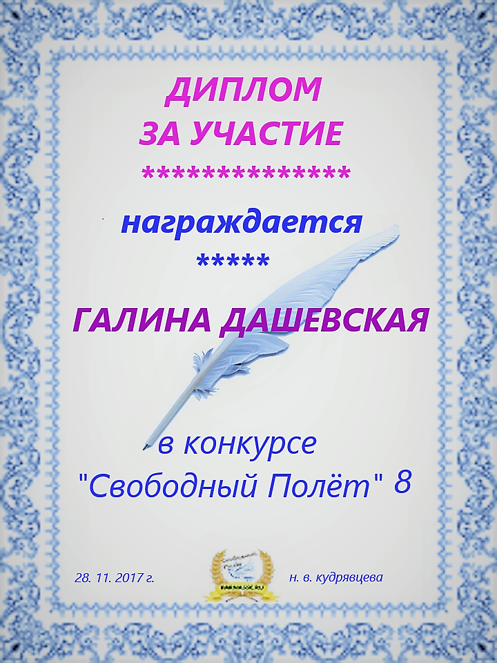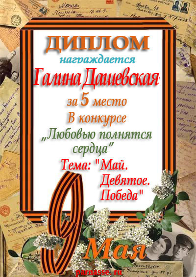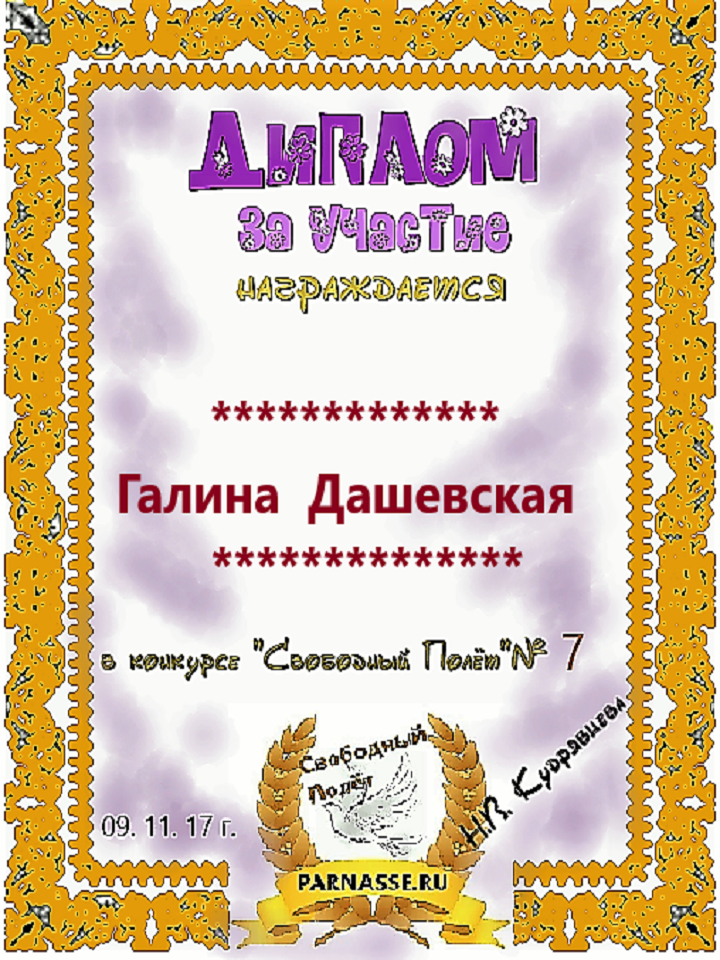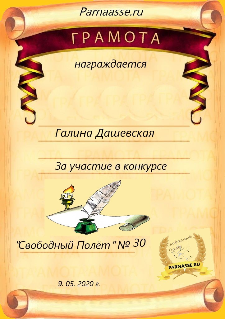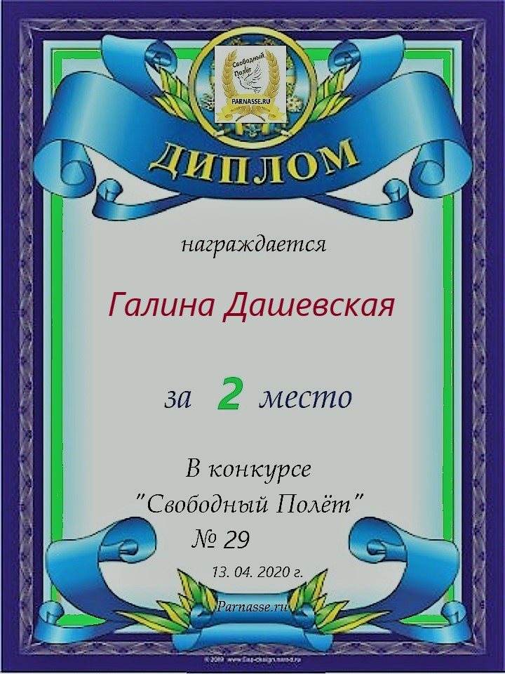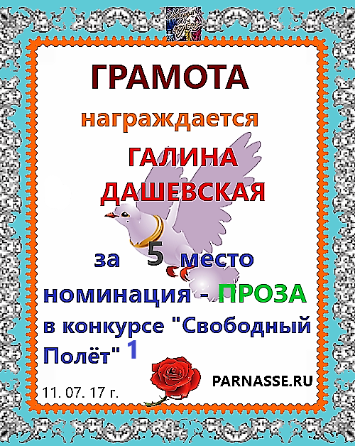 за 5 место в конкурсе "Свободный Полёт" № 35 ПОЭЗИЯ