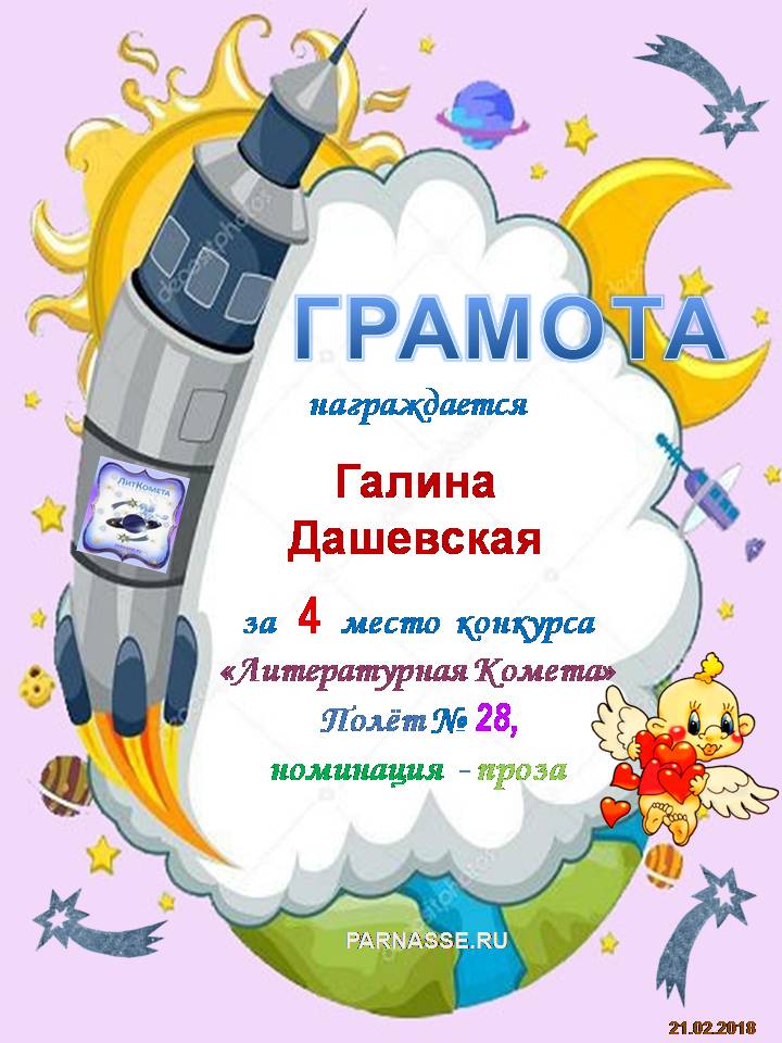 Поздравляю с 4 местом в конкурсе "ЛитКомета" Полёт № 28 - номинация Проза!
