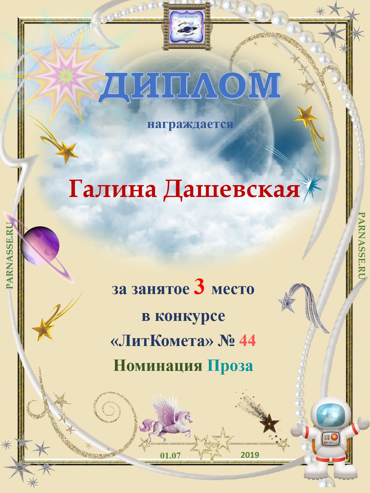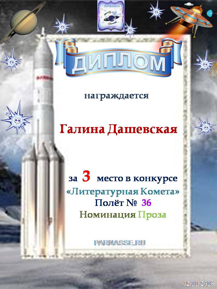 Диплом за 3 место в конкурсе "ЛитКомета"- Полёт № 9 - проза