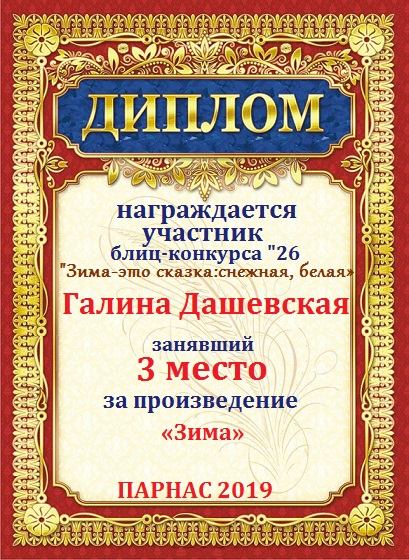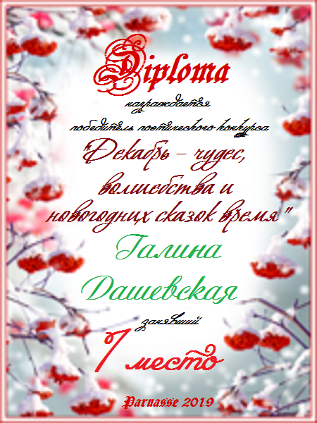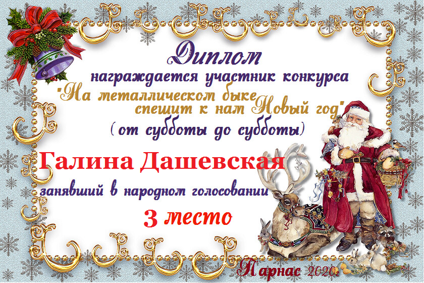 Поздравляю с победой - 3 местом в номинации Поэзия! Желаю счастья, благополучия и здоровья в наступающем году!
