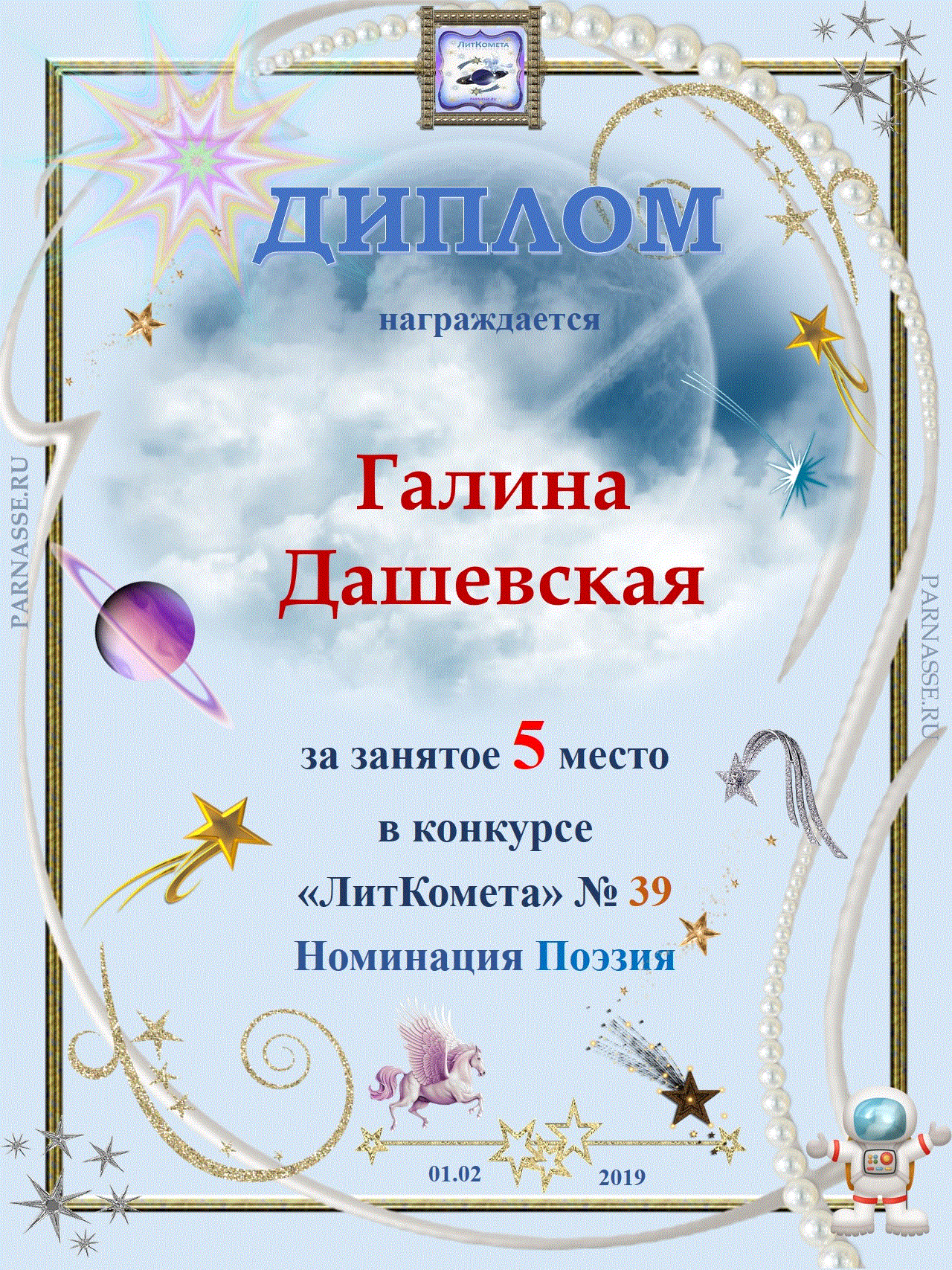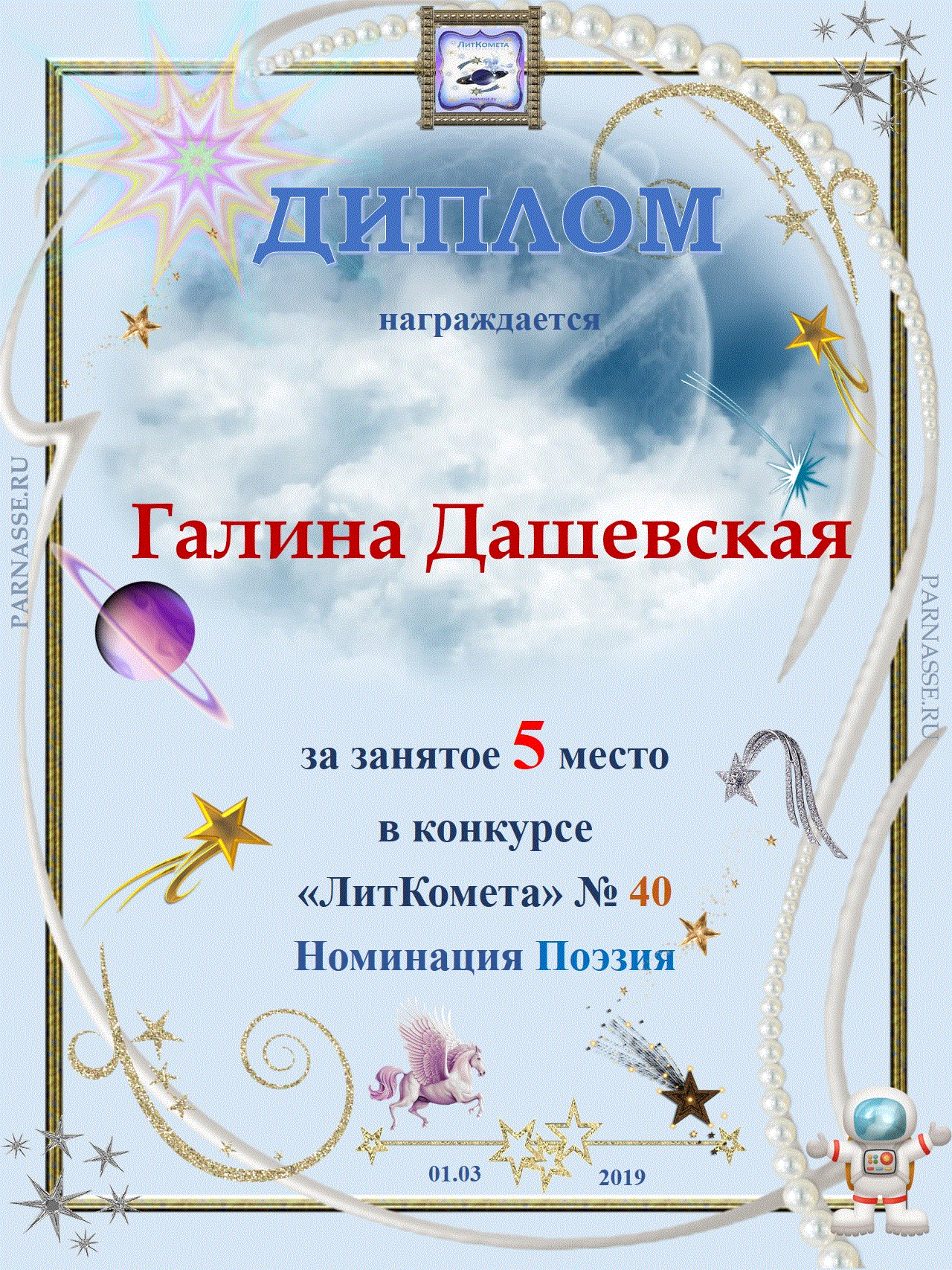 Поздравляем с 5 местом в конкурсе «Литературная Комета – Полёт № 32» - номинация поэзия!