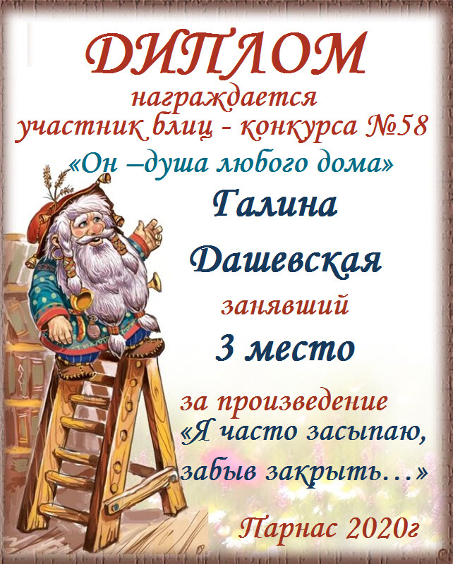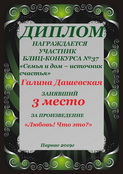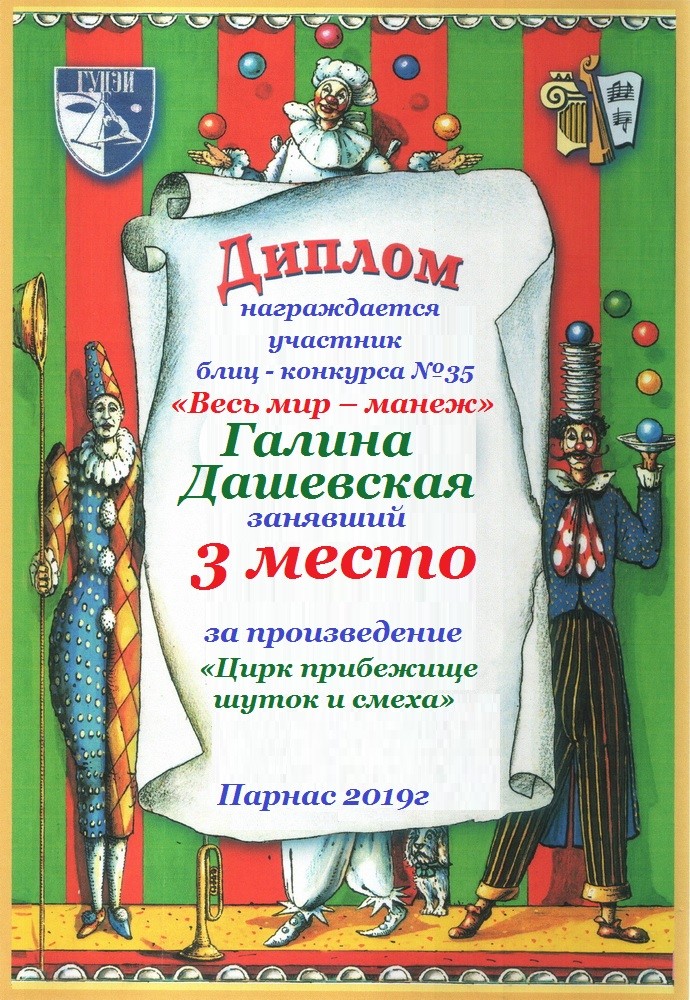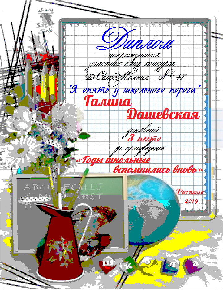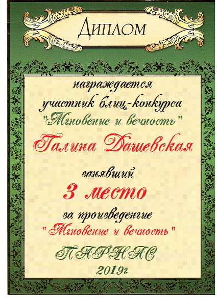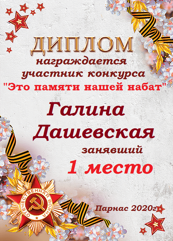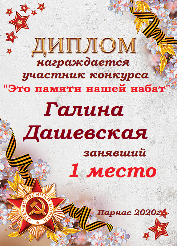Диплом за 1 место в праздничном конкурсе "Поздравим Парнас с трёхлетием вместе!"