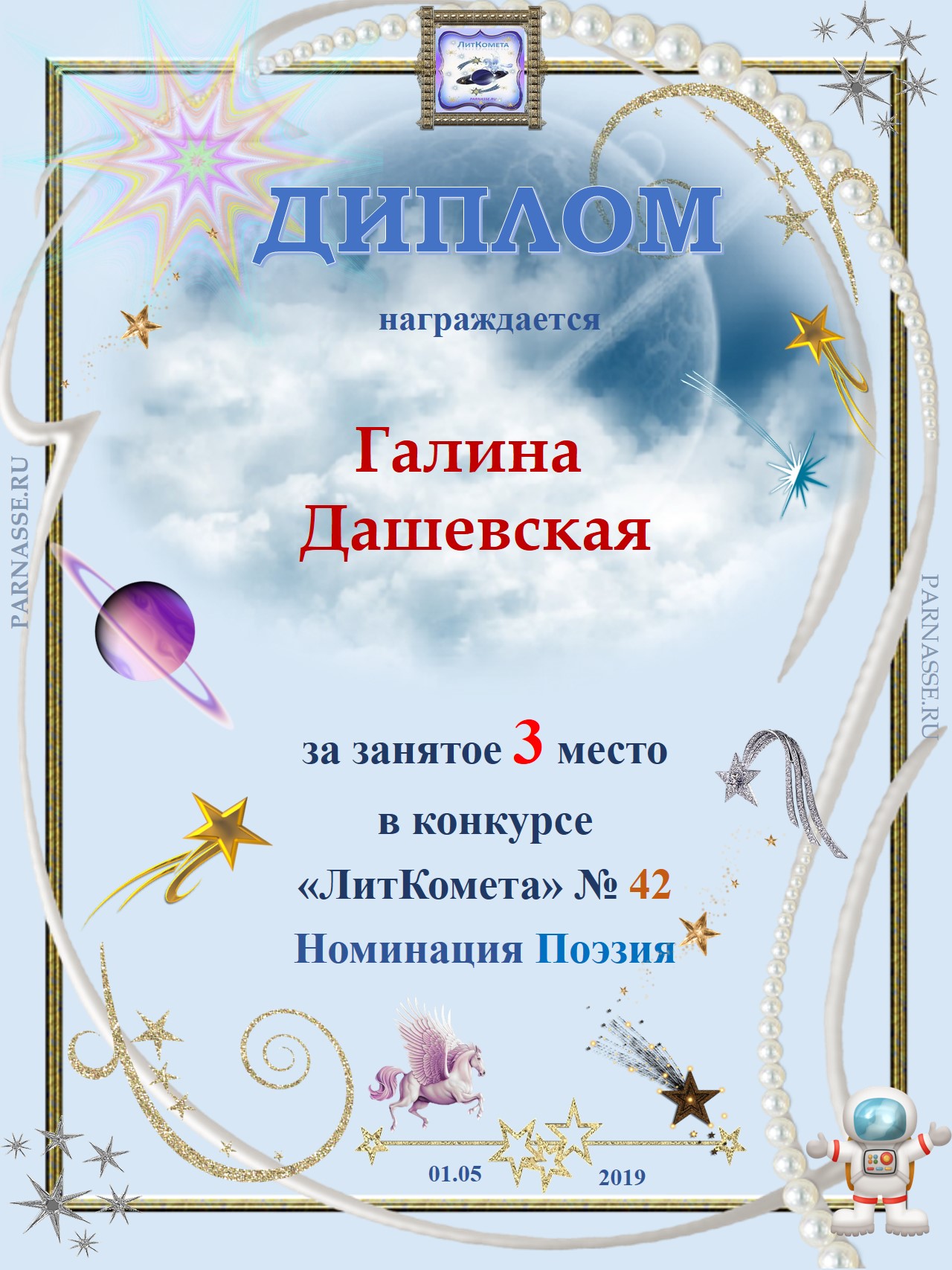 Поздравляю с занятым 3 местом в конкурсе “Литературная Комета – Полёт № 45» - Номинация Поэзия
