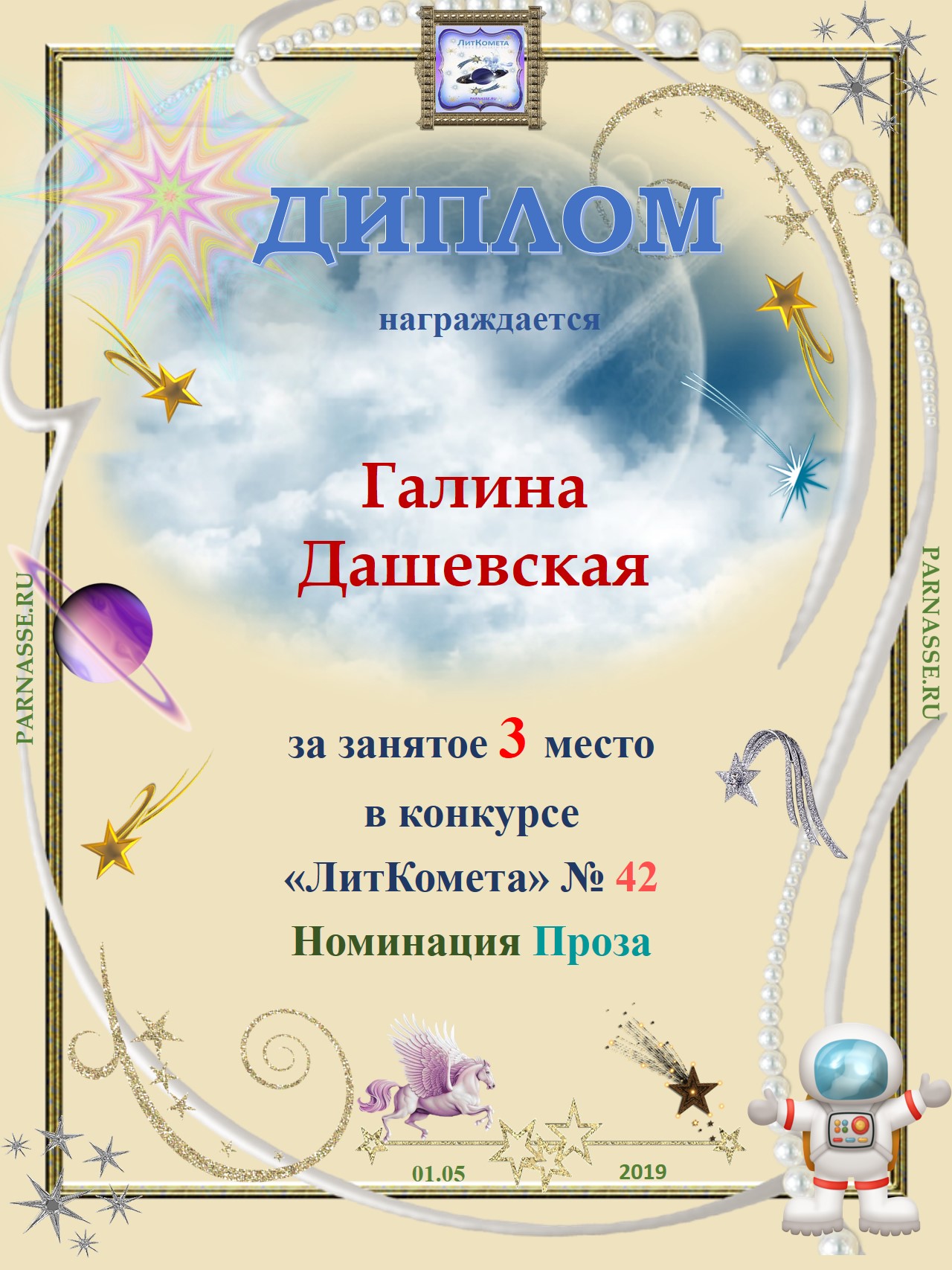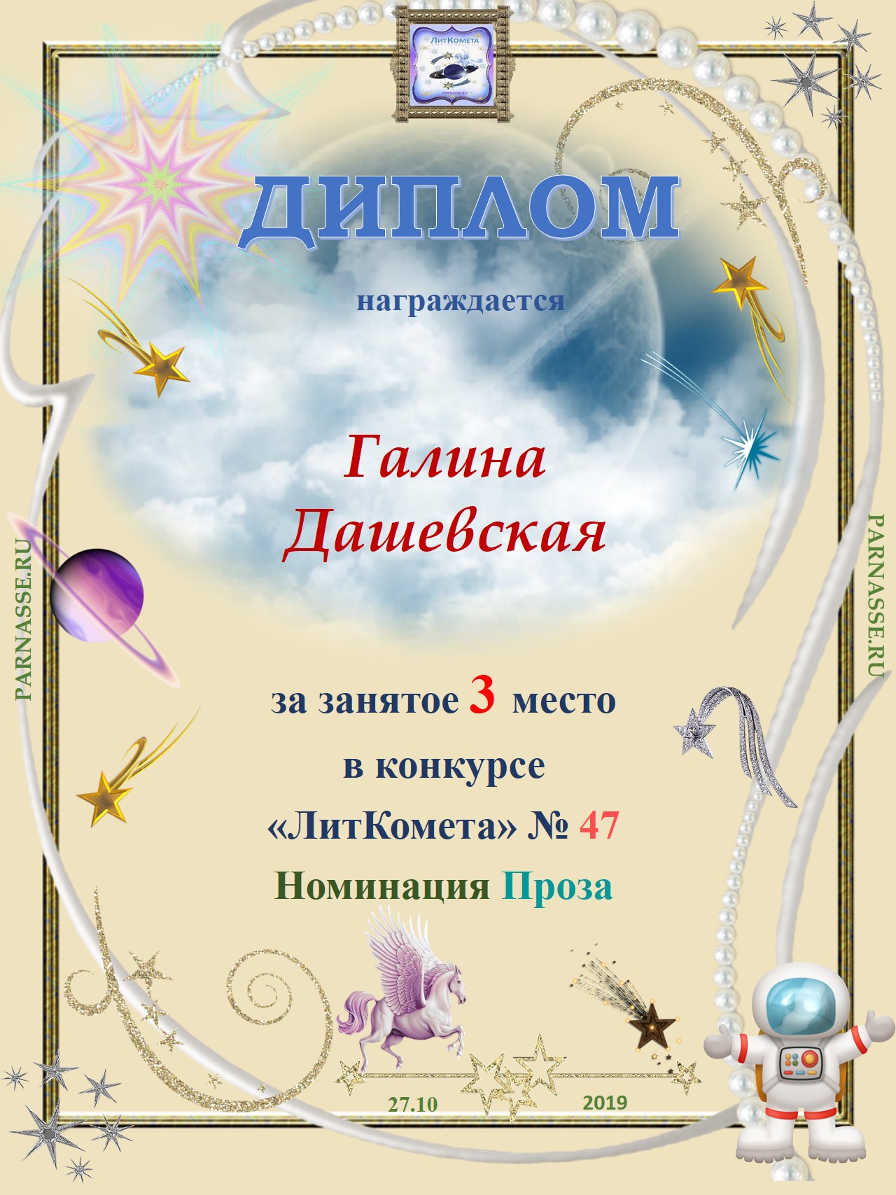 Поздравляю с занятым 3 местом в конкурсе "Литературная Комета - Полёт № 47" - Номинация Проза!