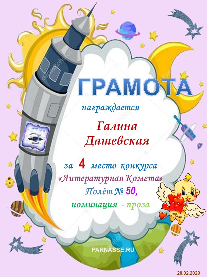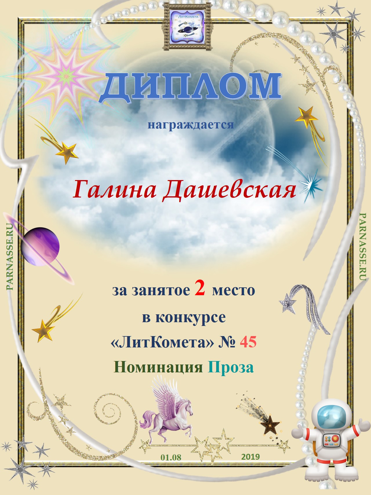 Поздравляю с занятым 2местом в конкурсе “Литературная Комета – Полёт № 45» - Номинация Проза