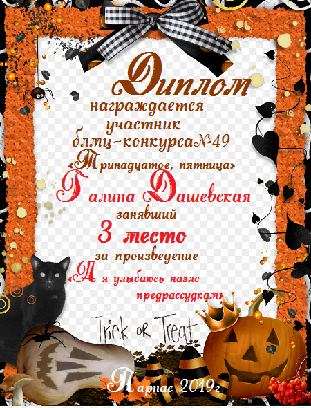 Третье место в судейском голосовании по итогам конкурса «Горько-сладкий октябрь»