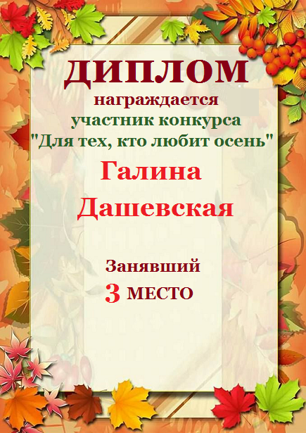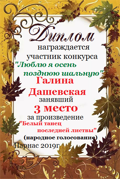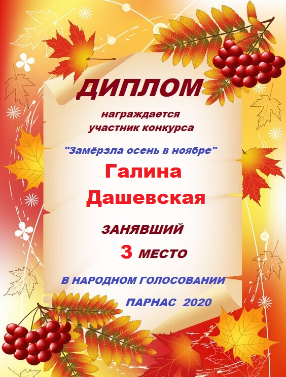 Третье место в судейском голосовании по итогам конкурса : Итоги триады "Осенняя рапсодия"