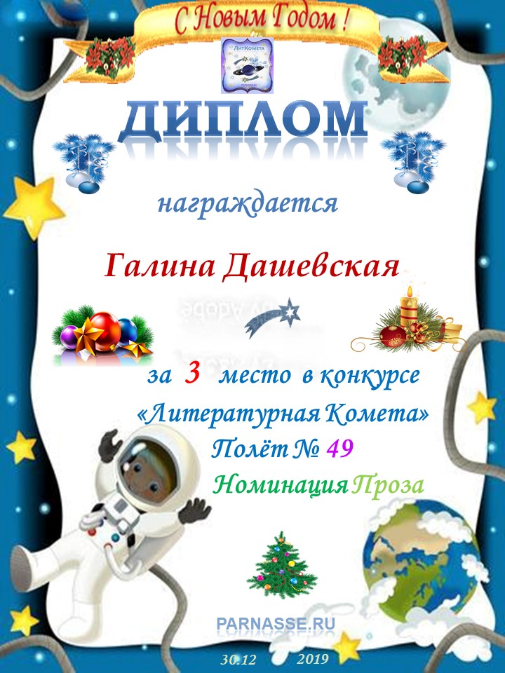 Поздравляем с 3 местом в конкурсе «Литературная Комета – Полёт № 32» - номинация проза!
