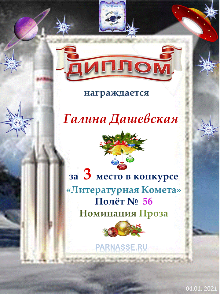 Поздравляю с занятым 3 местом в конкурсе «Литературная Комета – Полёт № 34» - номинация проза!