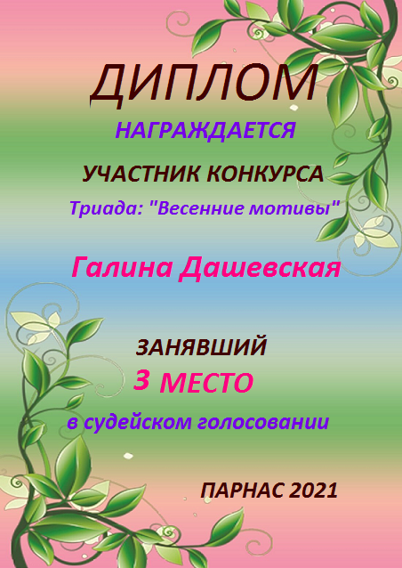 Третье место в судейском голосовании по итогам конкурса "Триада: «Весенние мотивы»