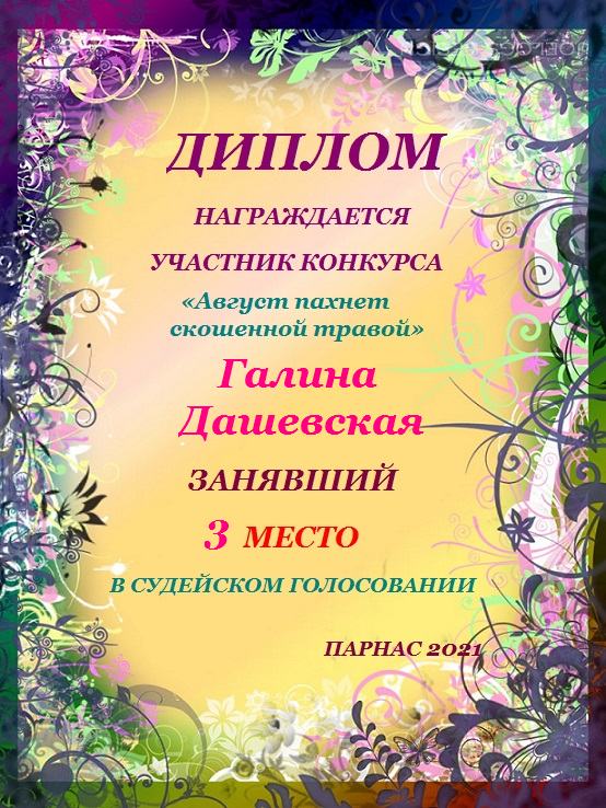 Третье место в судейском голосовании по итогам конкурса «Август пахнет скошенной травой»