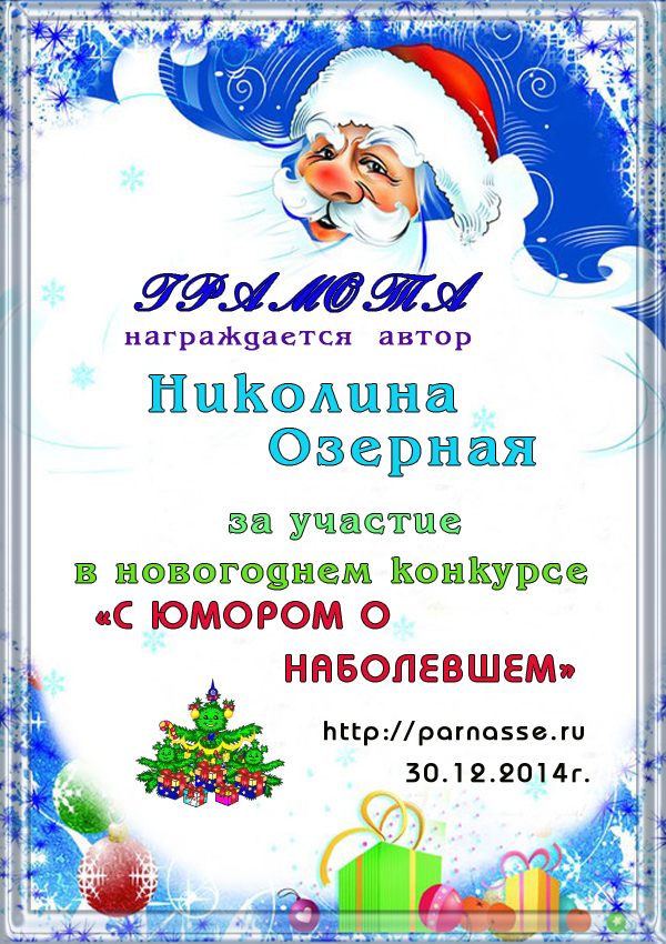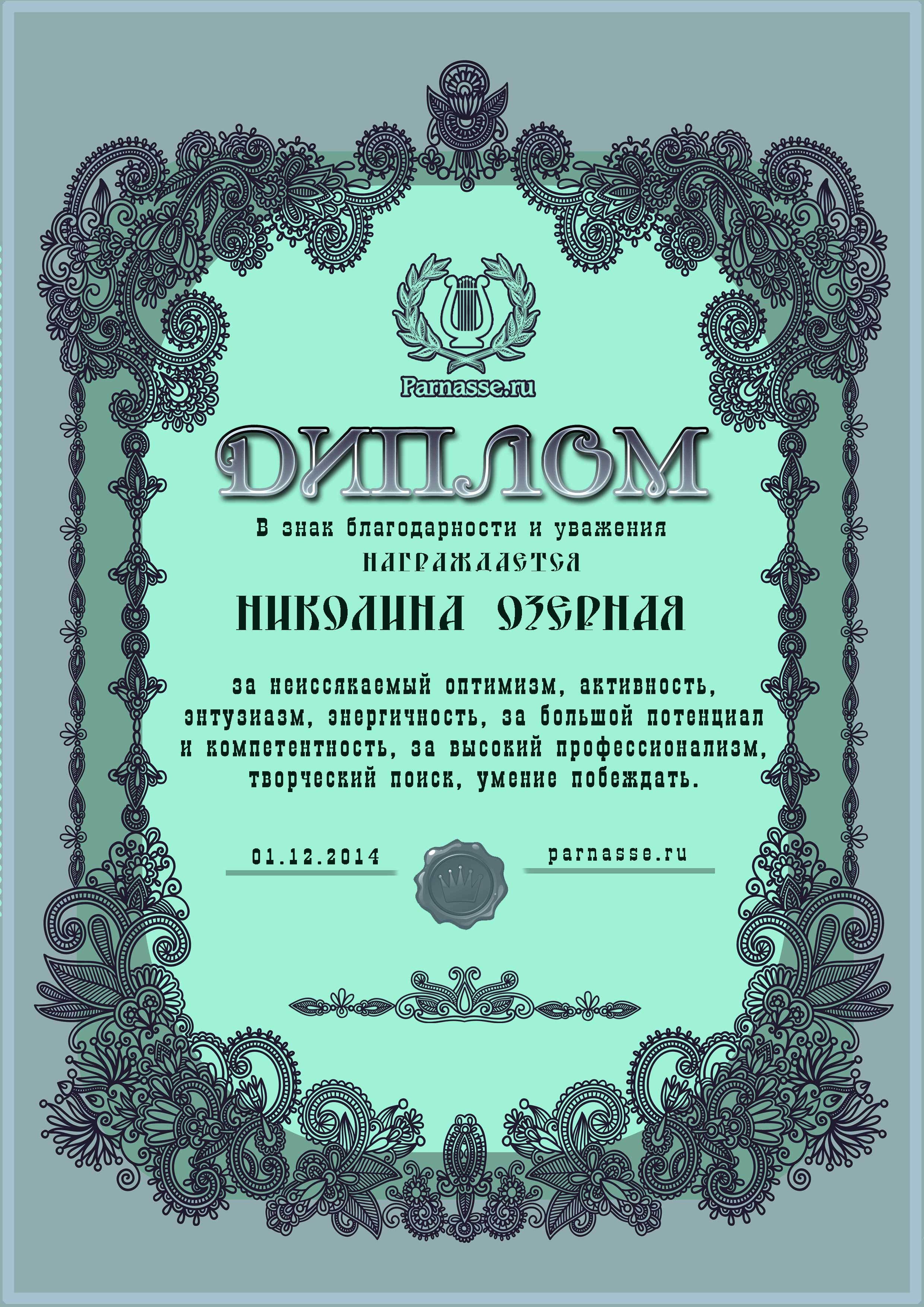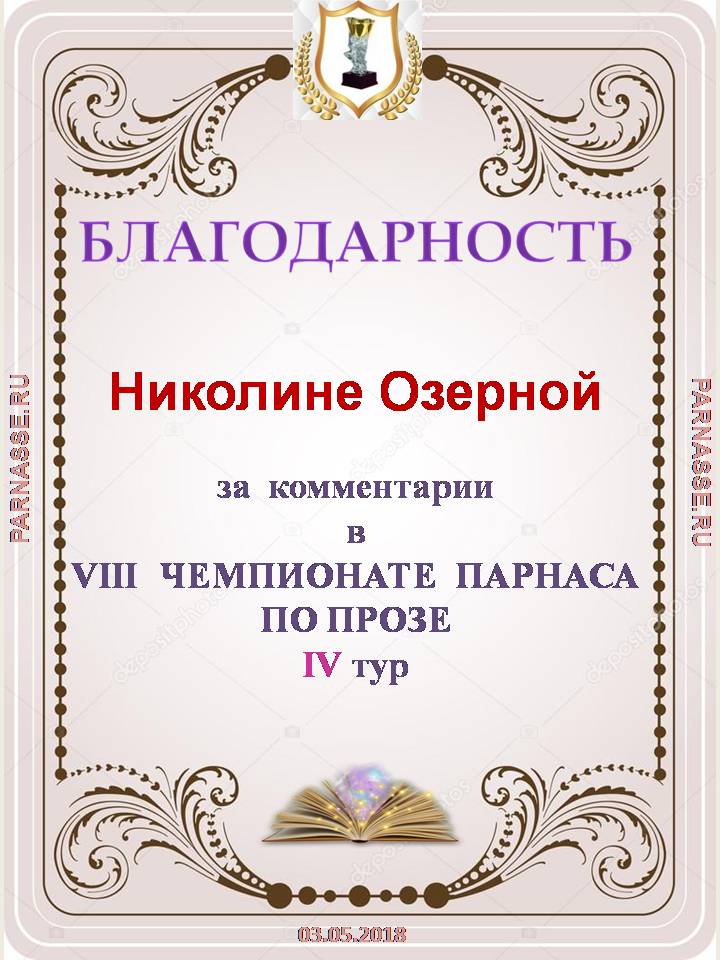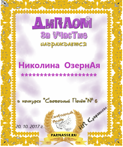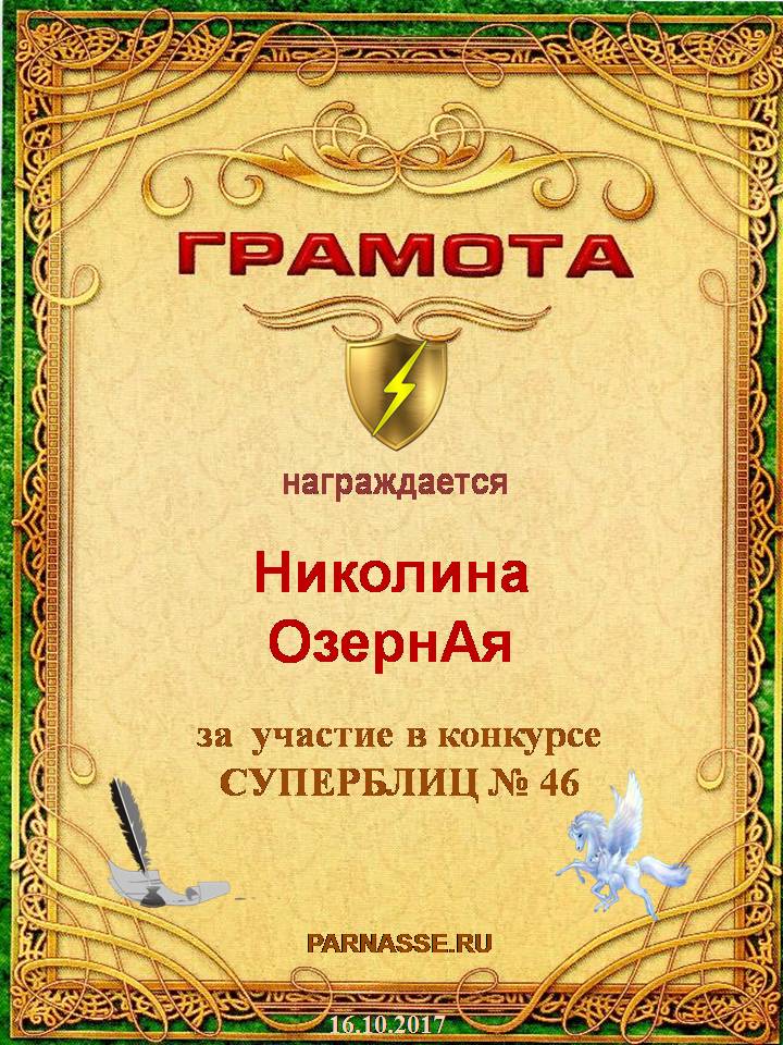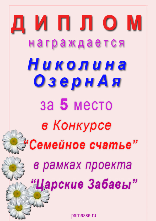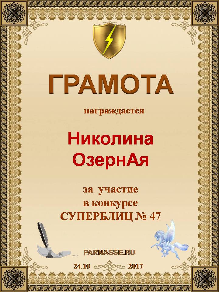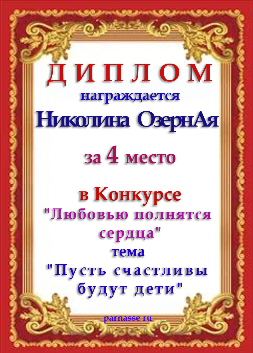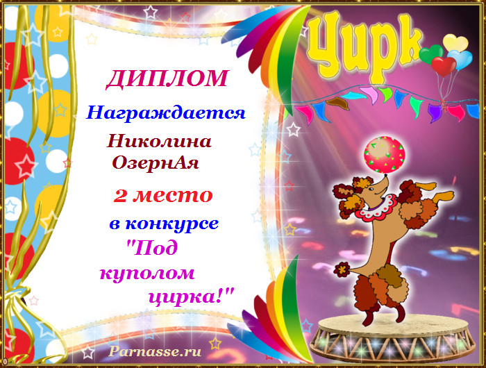 За неугасающую и неисчерпаемую творческую активность, постоянный контакт с Музой и признание сообществом "Парнасцев".От всей души желаем Вам, Николина, здоровья, любви, успехов, благополучия, удачи и творческого вдохновения!