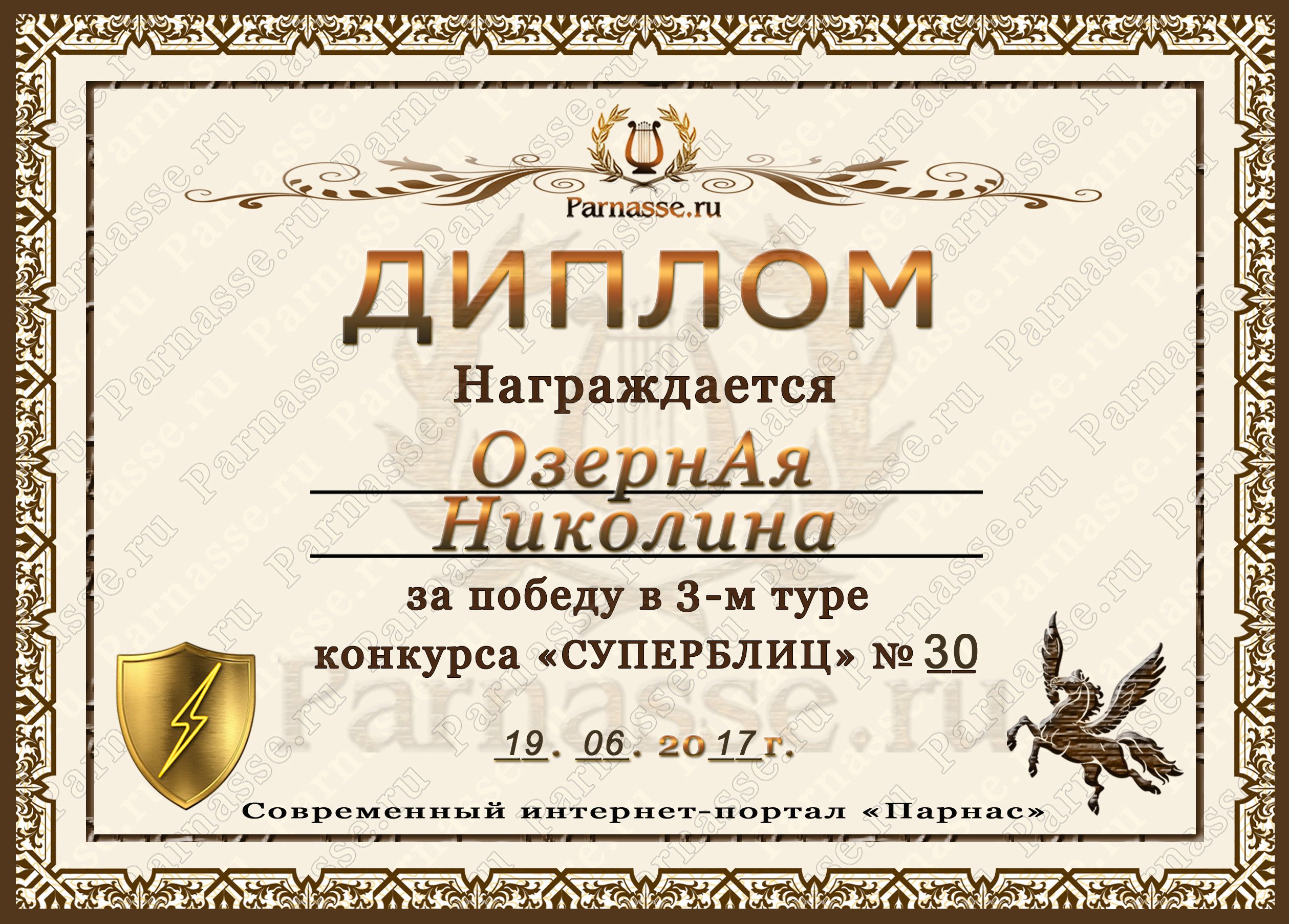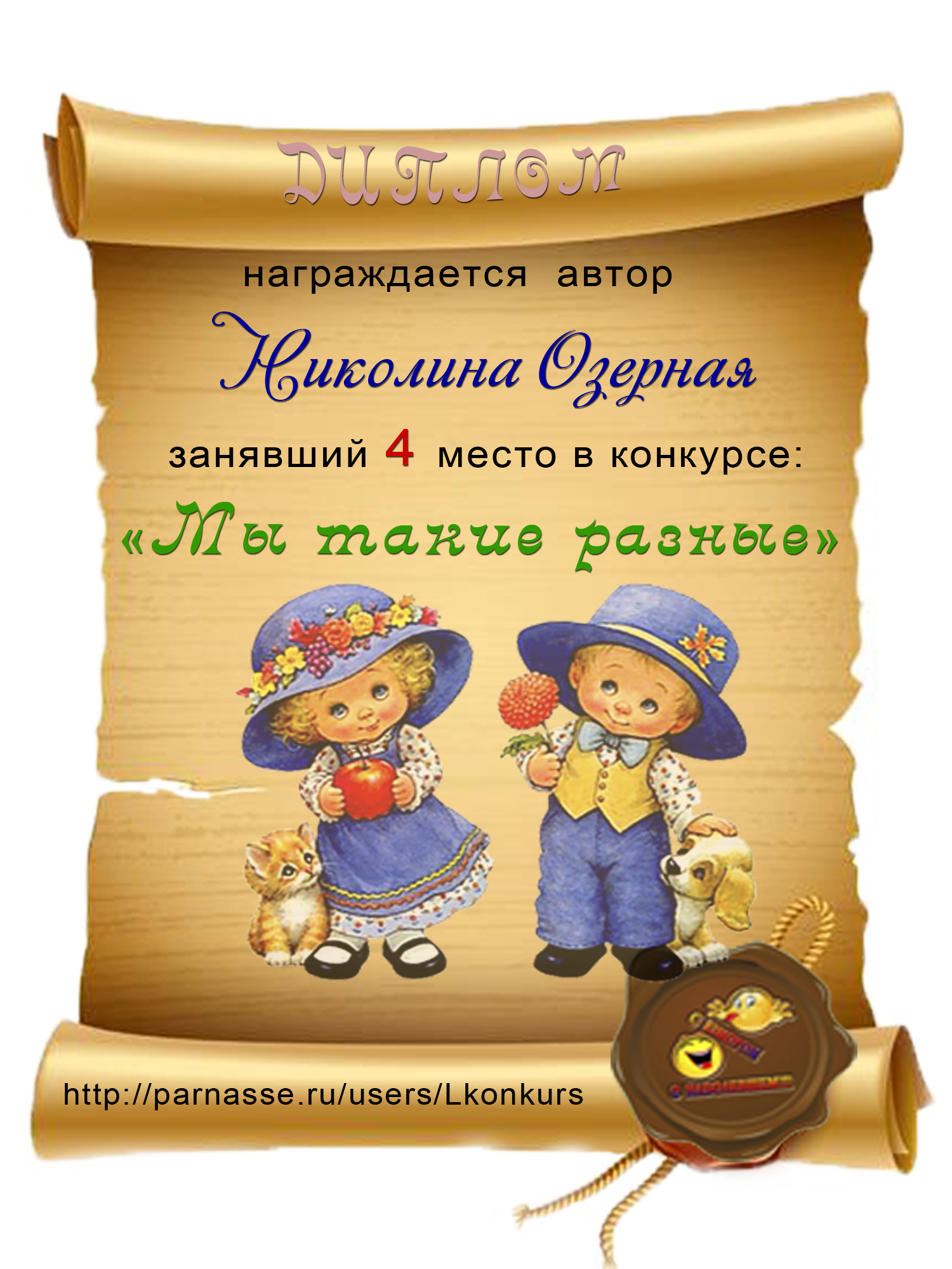 Диплом победителю в конкурсах Акростиха в связи с пятилетием конкурса Акростиха!