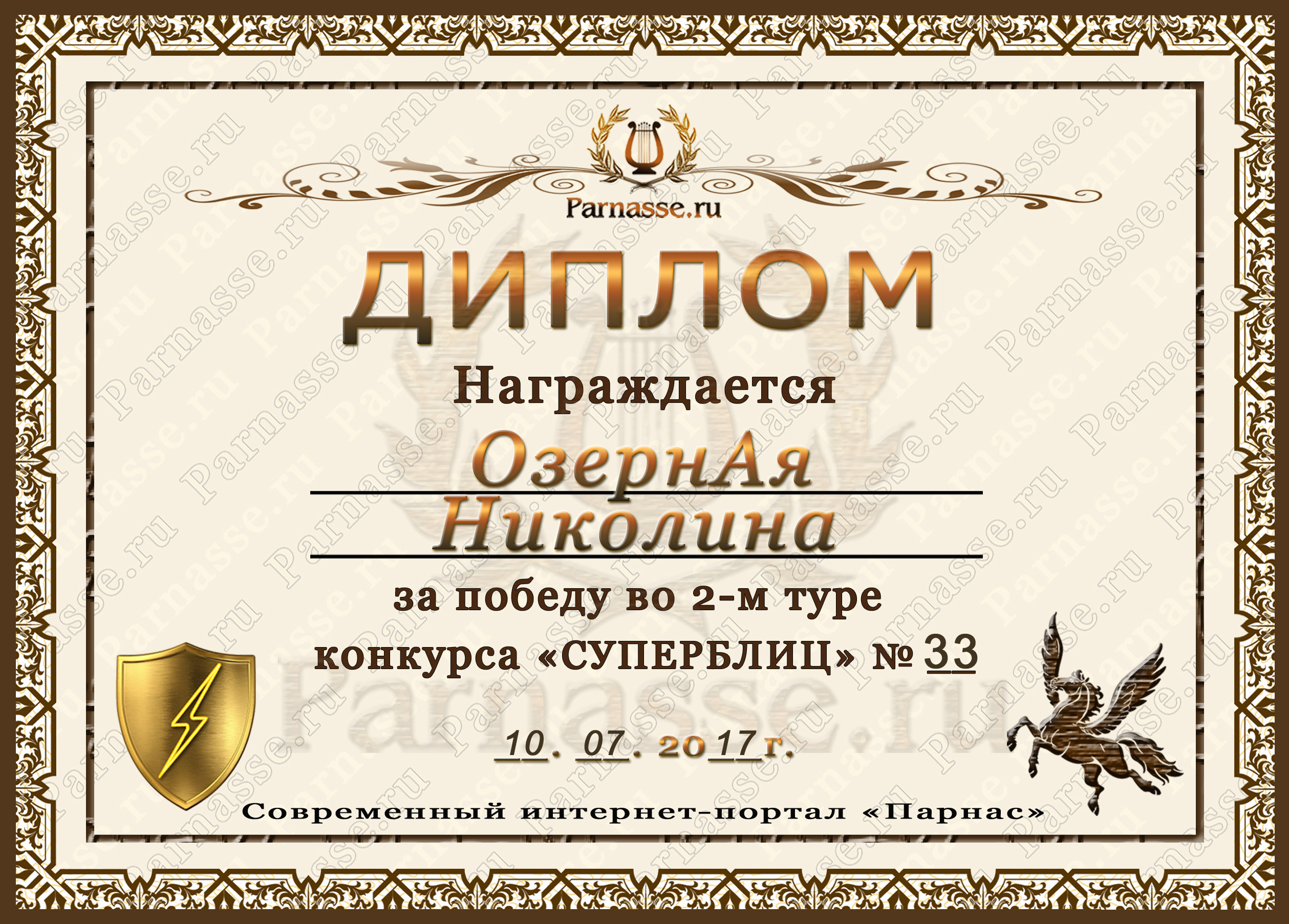 ![]() Медаль "Гордость и Надежда Парнаса"