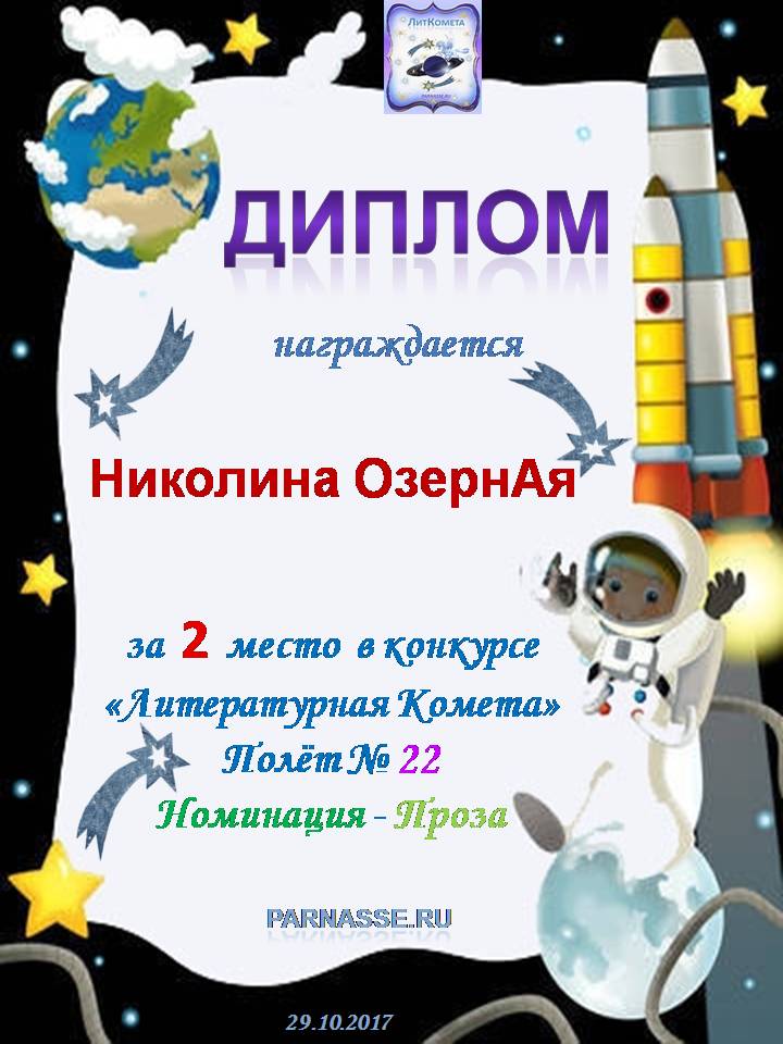 За 1 место в конкурсе "Литературная Комета - Полёт № 34" - поэзия