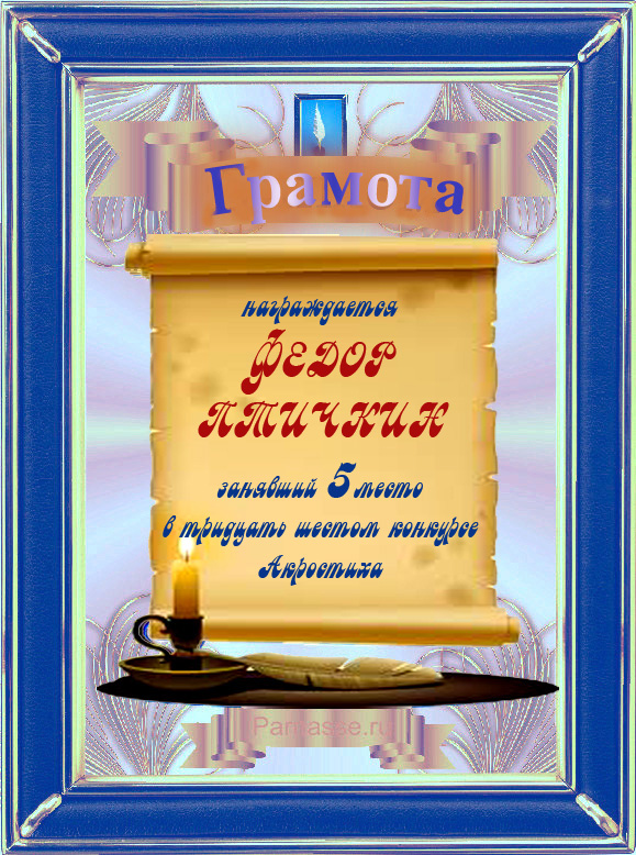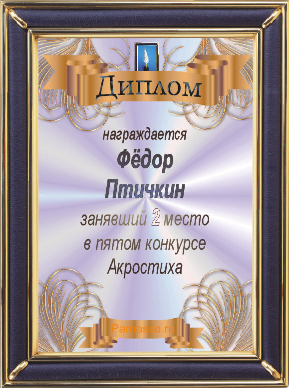 Диплом победителю в конкурсах Акростиха в честь пятилетия конкурса Акростиха!