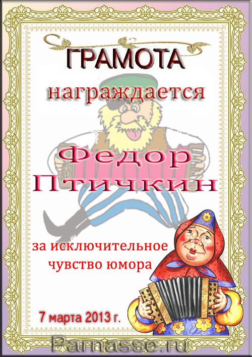 Подарок от: КОНКУРС *Друзья и Подружки УЛЁТНОЙ ЧАСТУШКИ*, 5 апреля 2014: