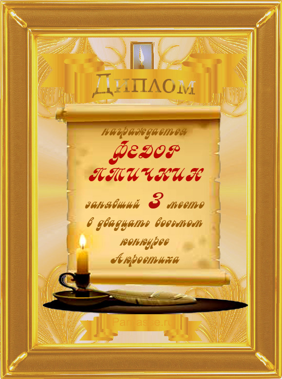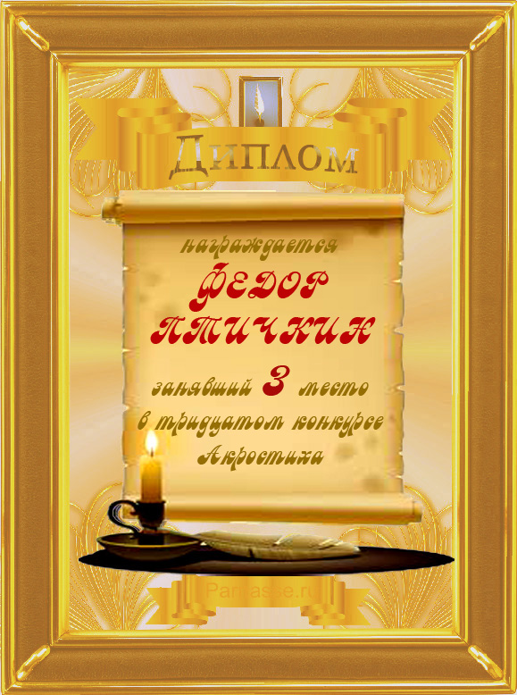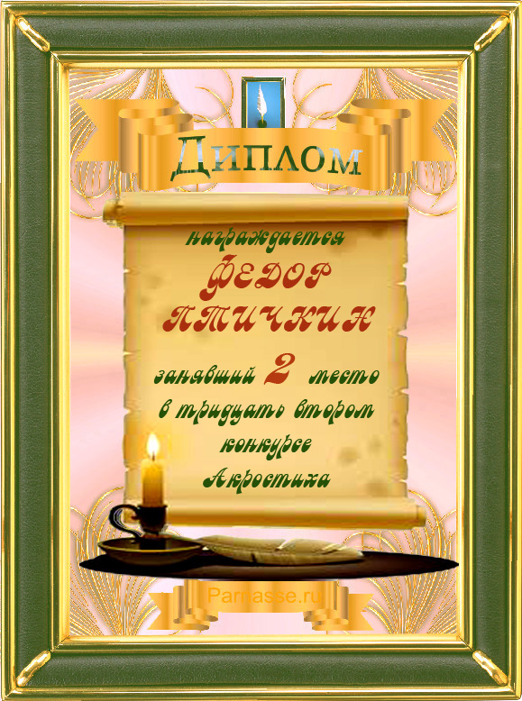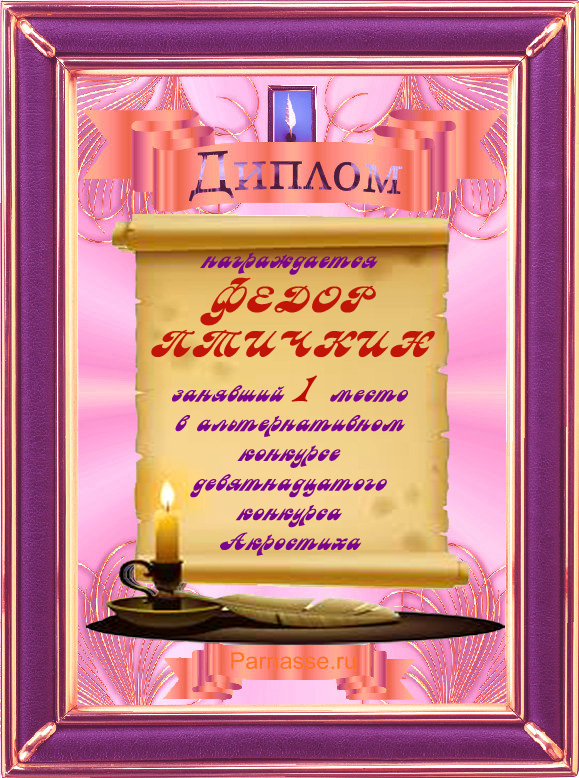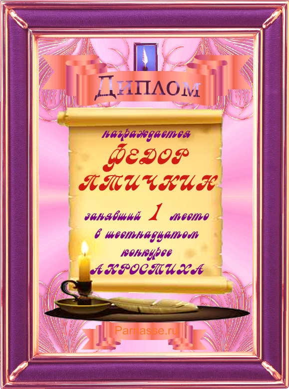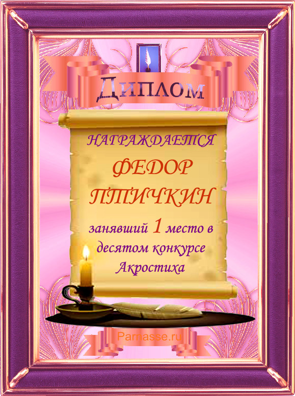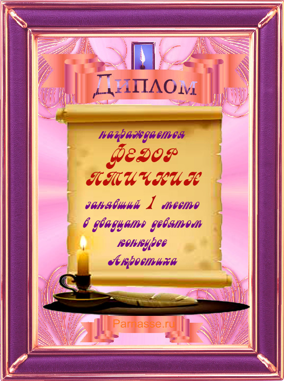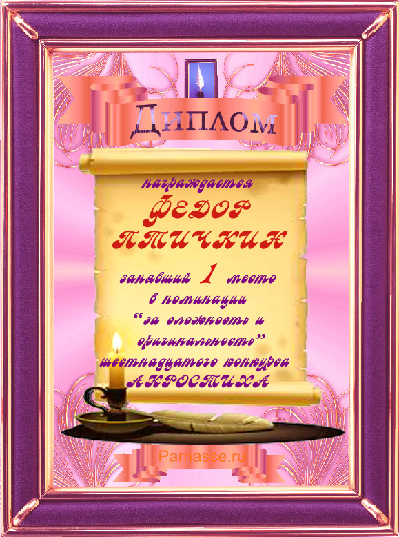 Диплом за 1 место в 29 конкурсе АКРОСТИХА (Дополнительная номинация "За сложность и оригинальность"! ПОЗДРАВЛЯЮ!