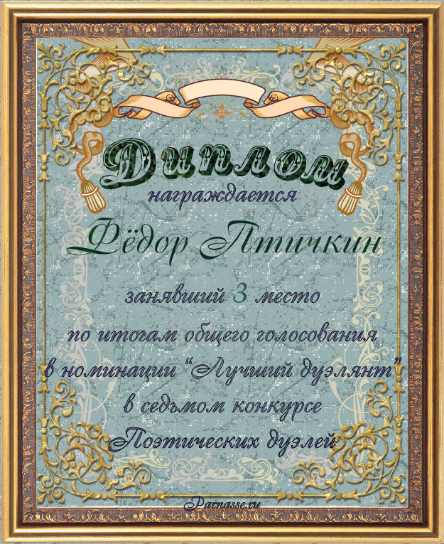Диплом за 3-е место в номинации "Лучший дуэлянт" по итогам общего голосования в седьмом конкурсе поэтических дуэлей