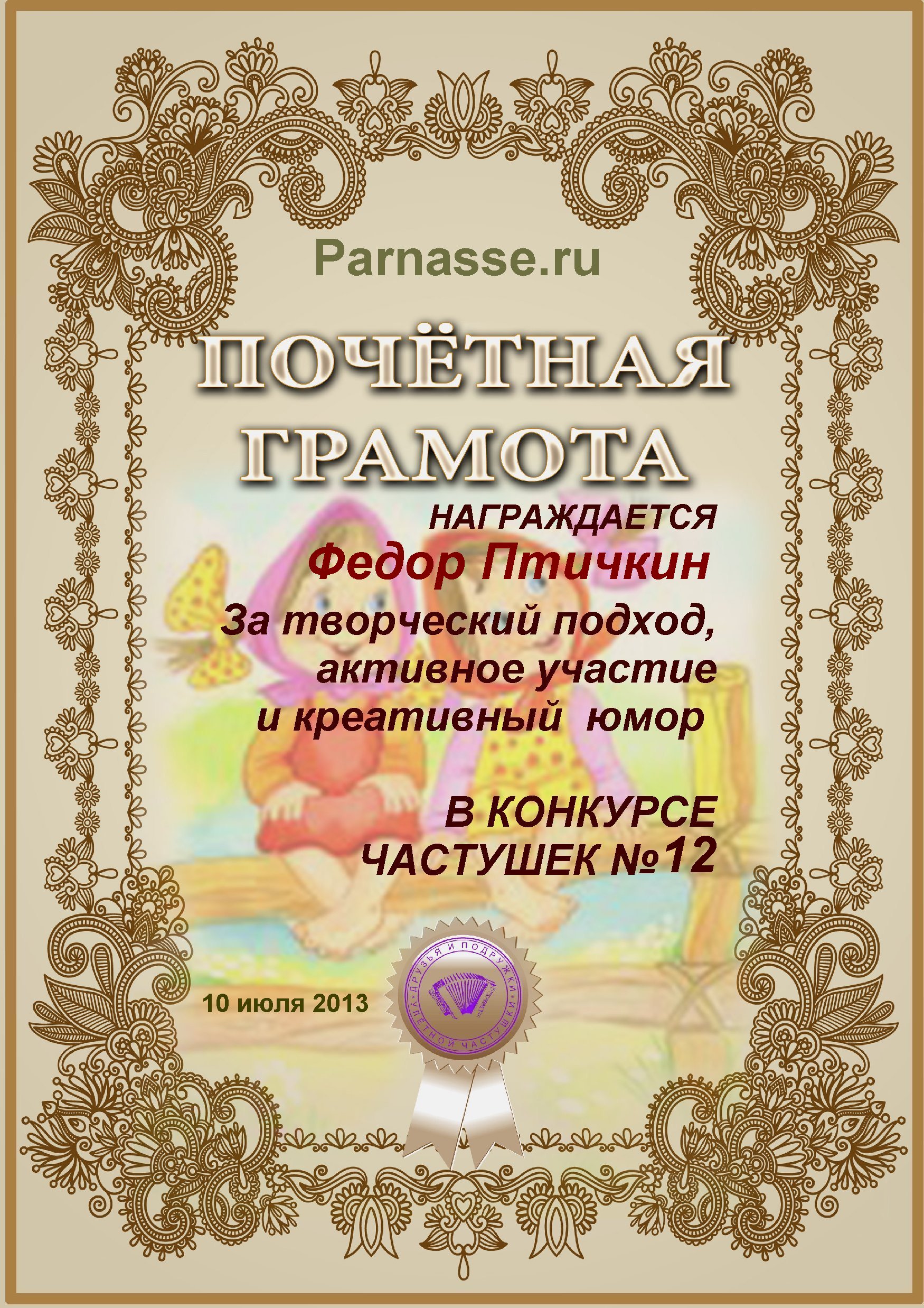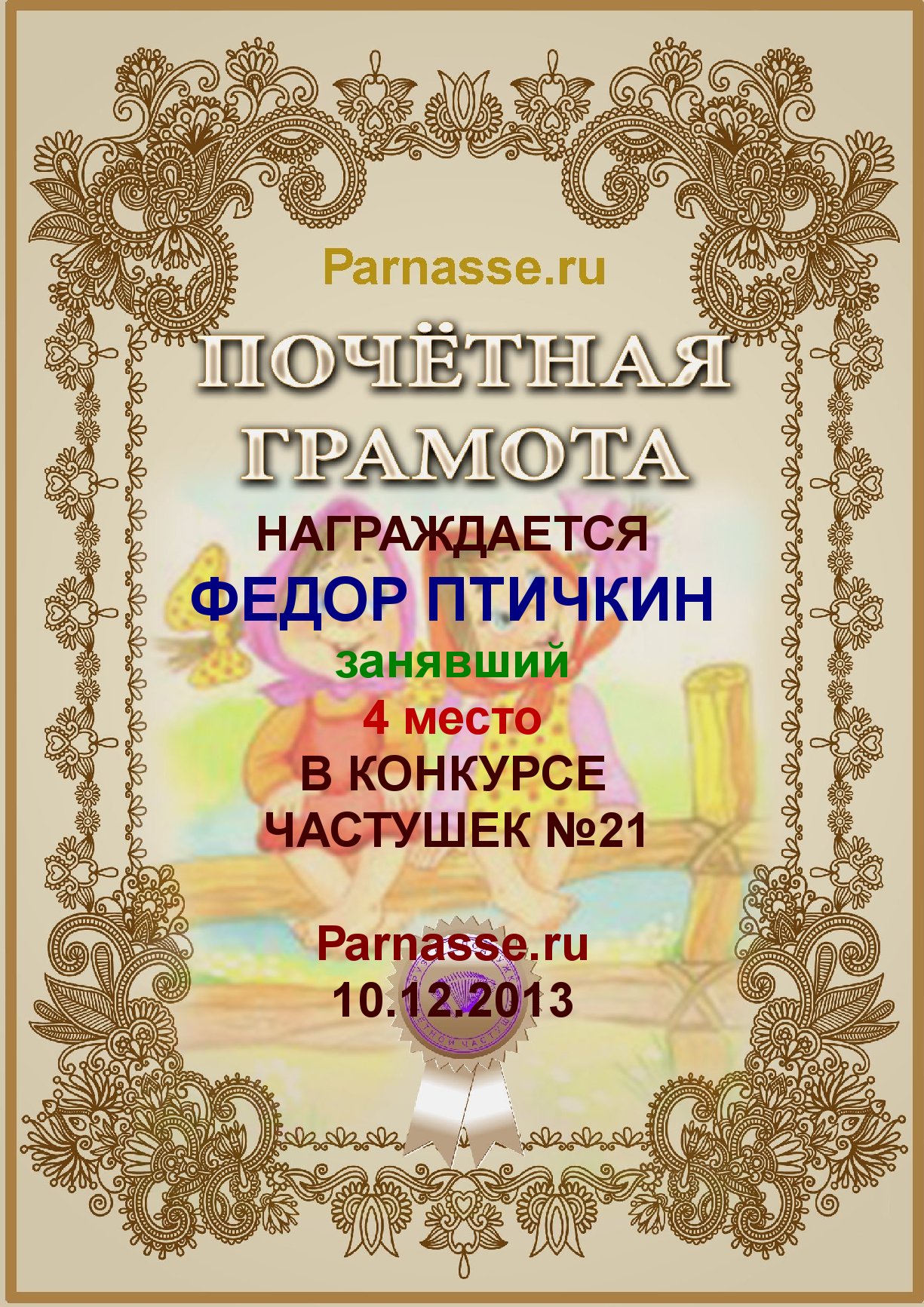 Похвальная грамота за 4 место в конкурсе лимериков № 26 (10.12.2012 г.)