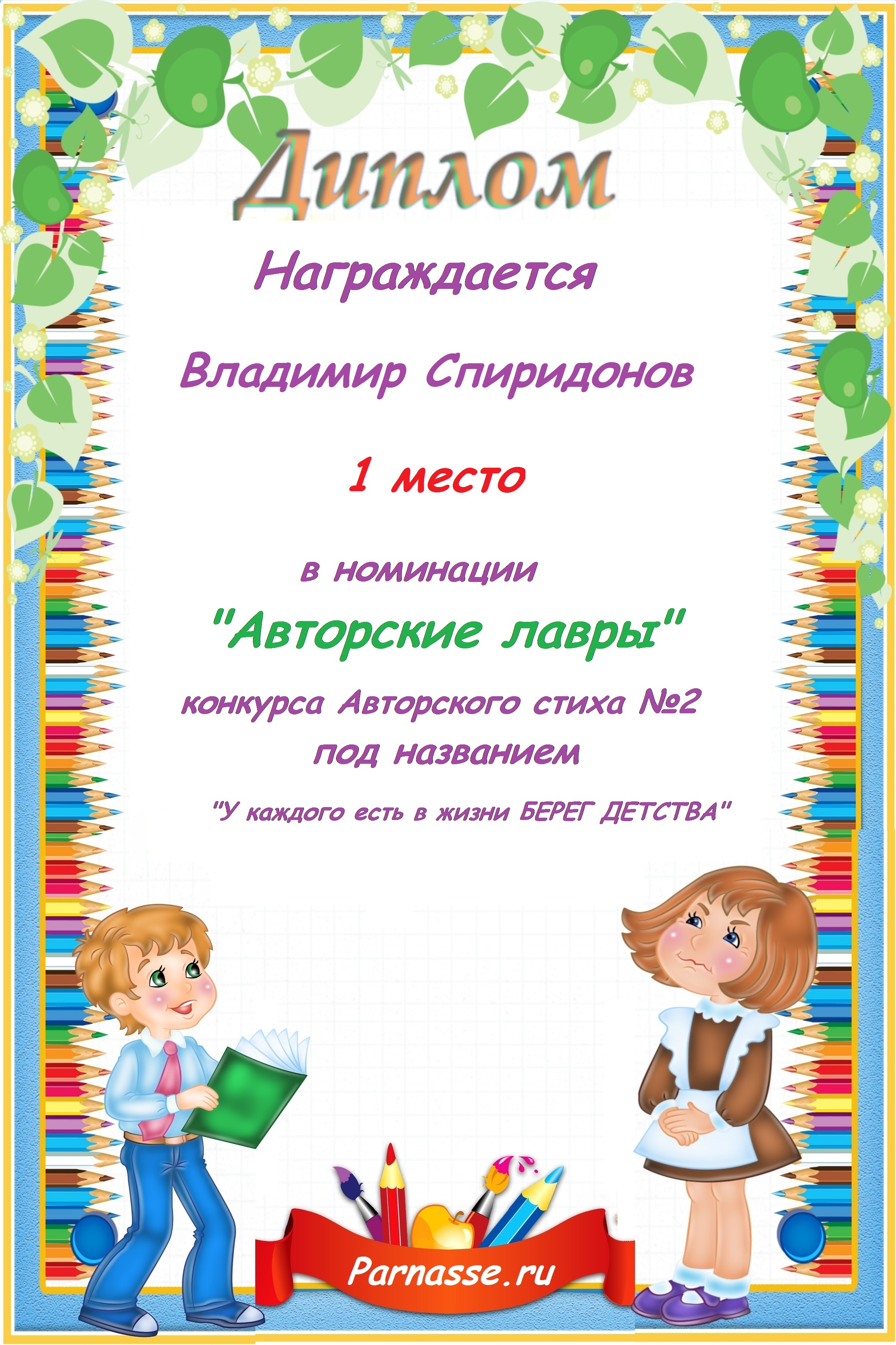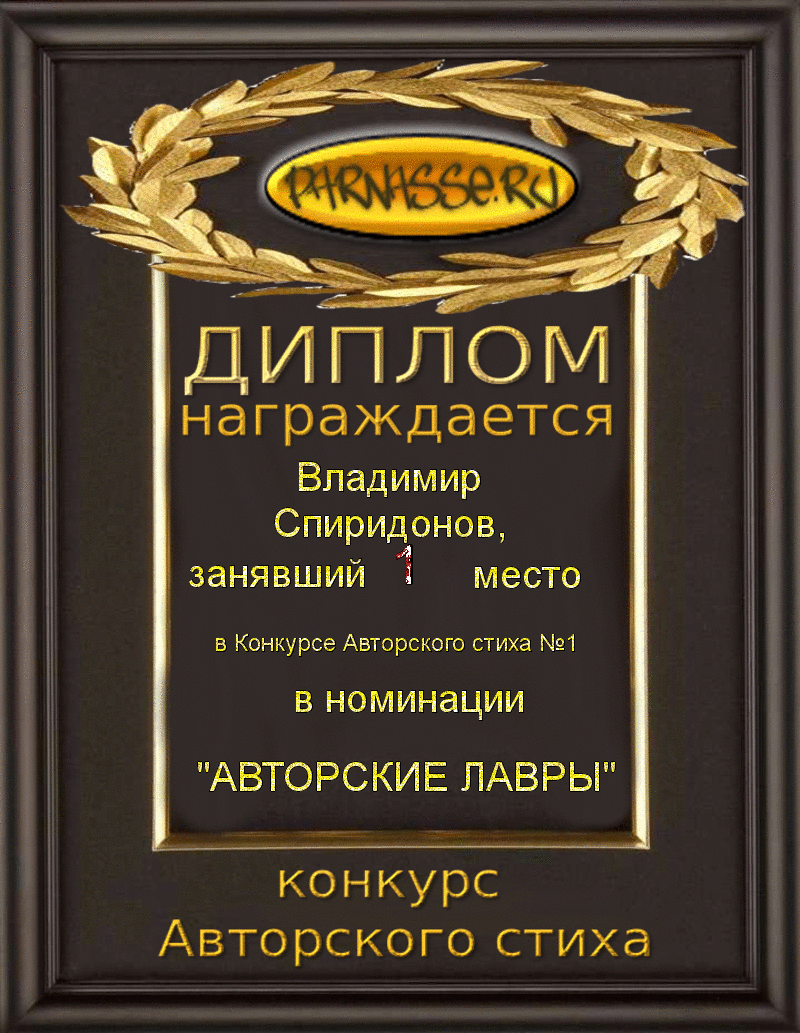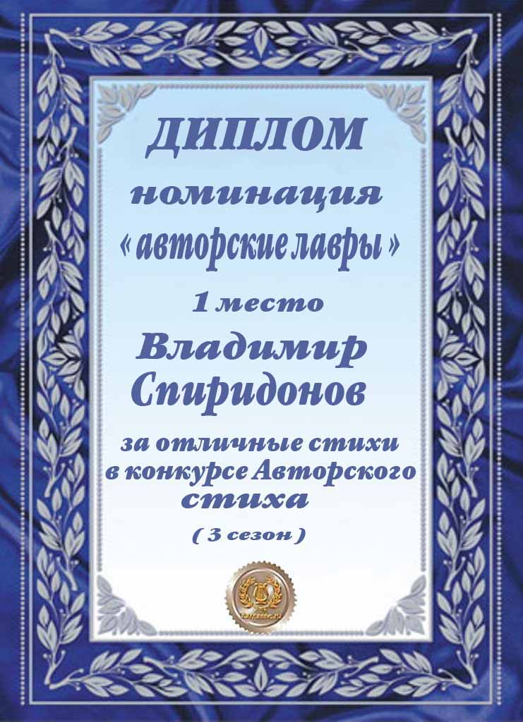 За 1 место в конкурсе Авторского стиха (3 сезон)в Номинации "Авторские лавры"