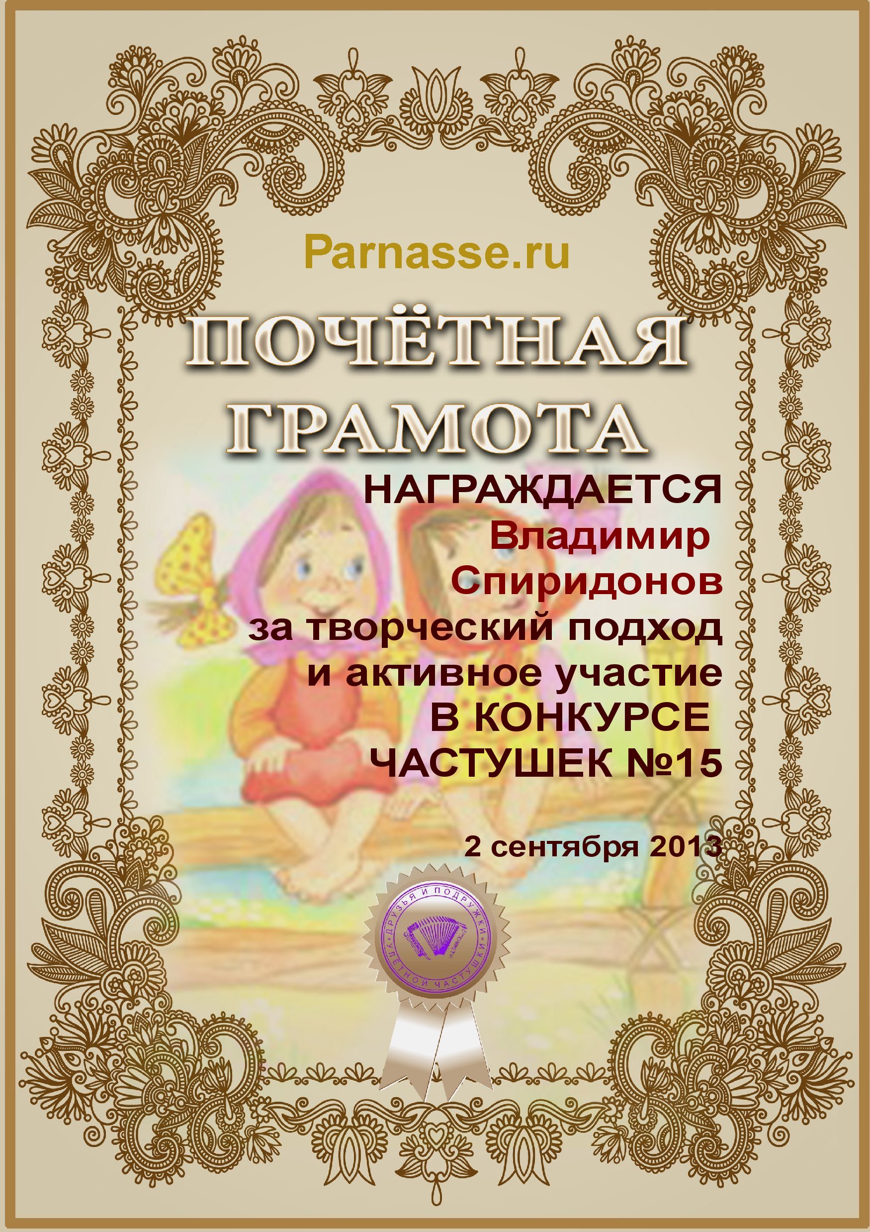За произведение "Частушки от Володи" по результатам общего голосования.