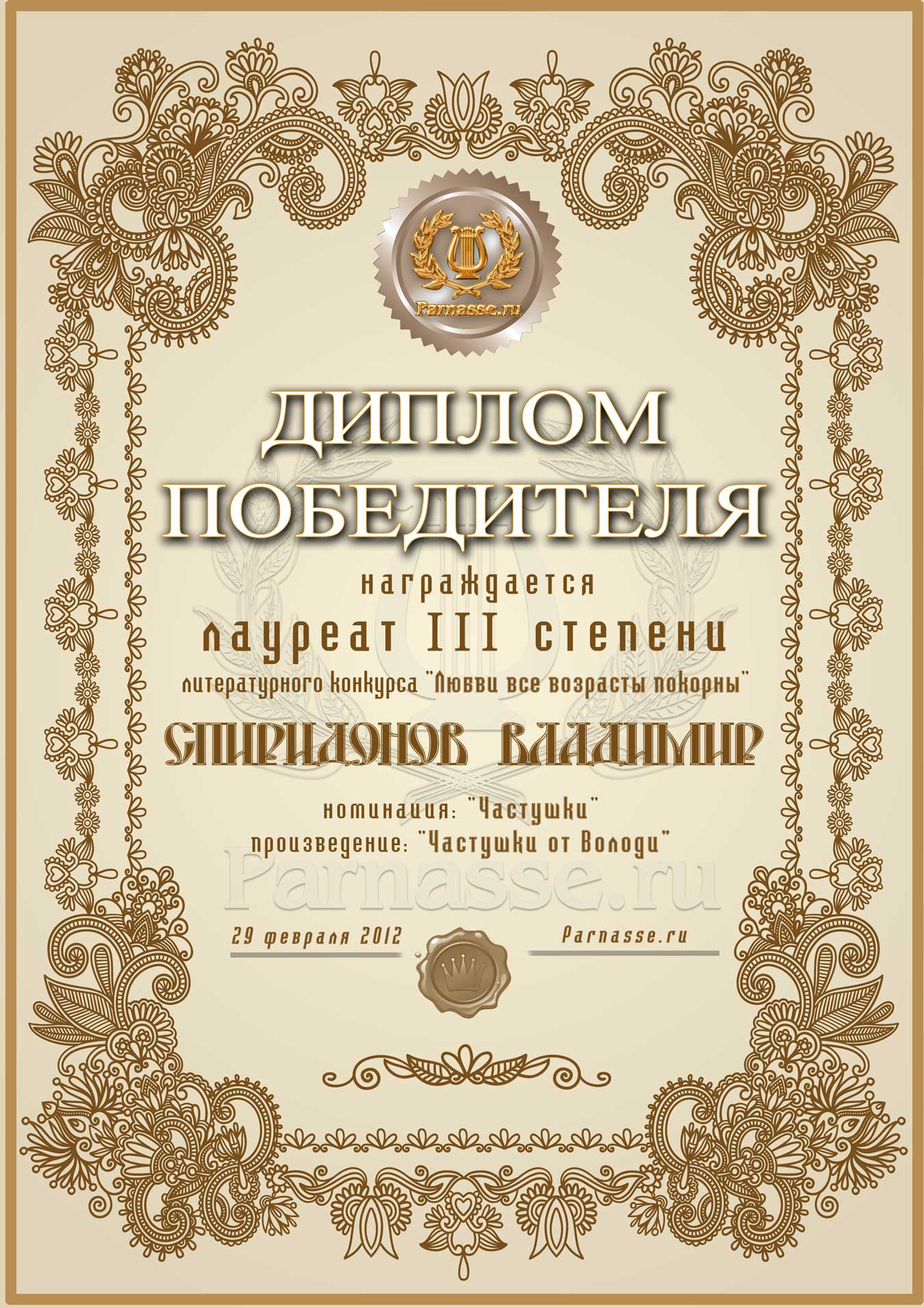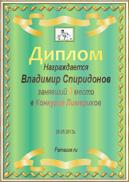 Диплом за 3 место в конкурсе лимериков №12 (20.05.2012.)