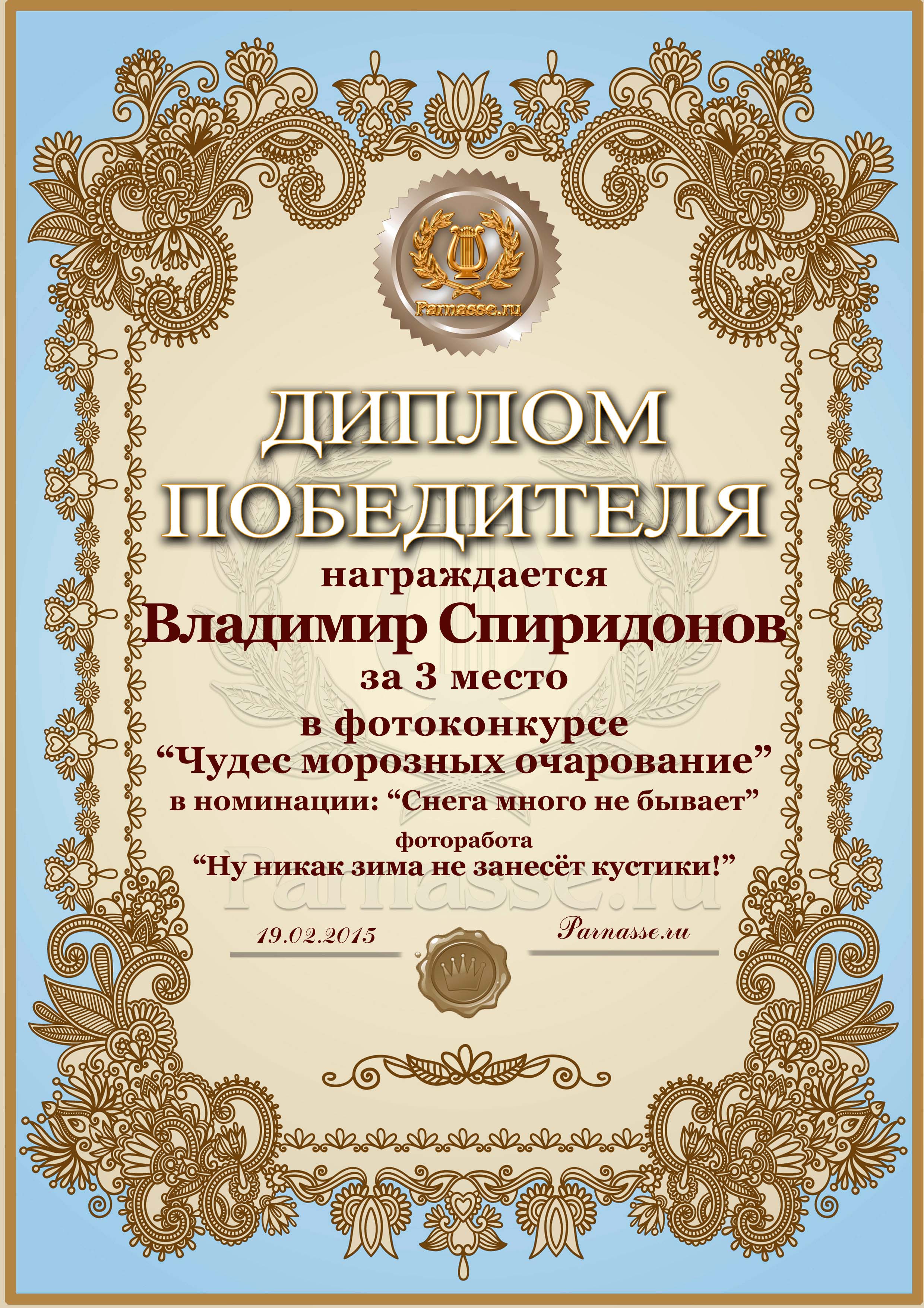 Диплом за 3 место в фотоконкурсе "Чудес морозных очарование"